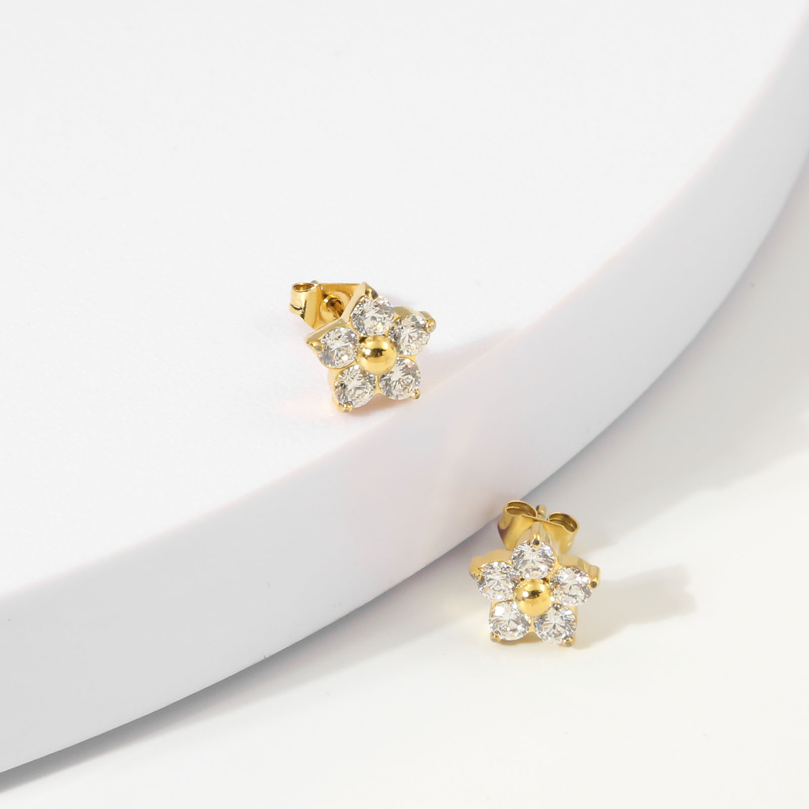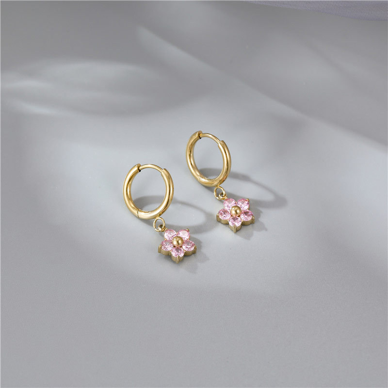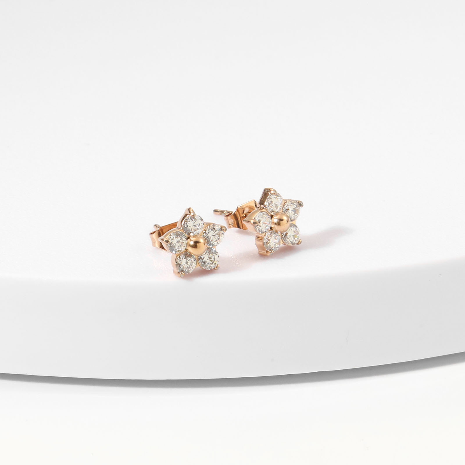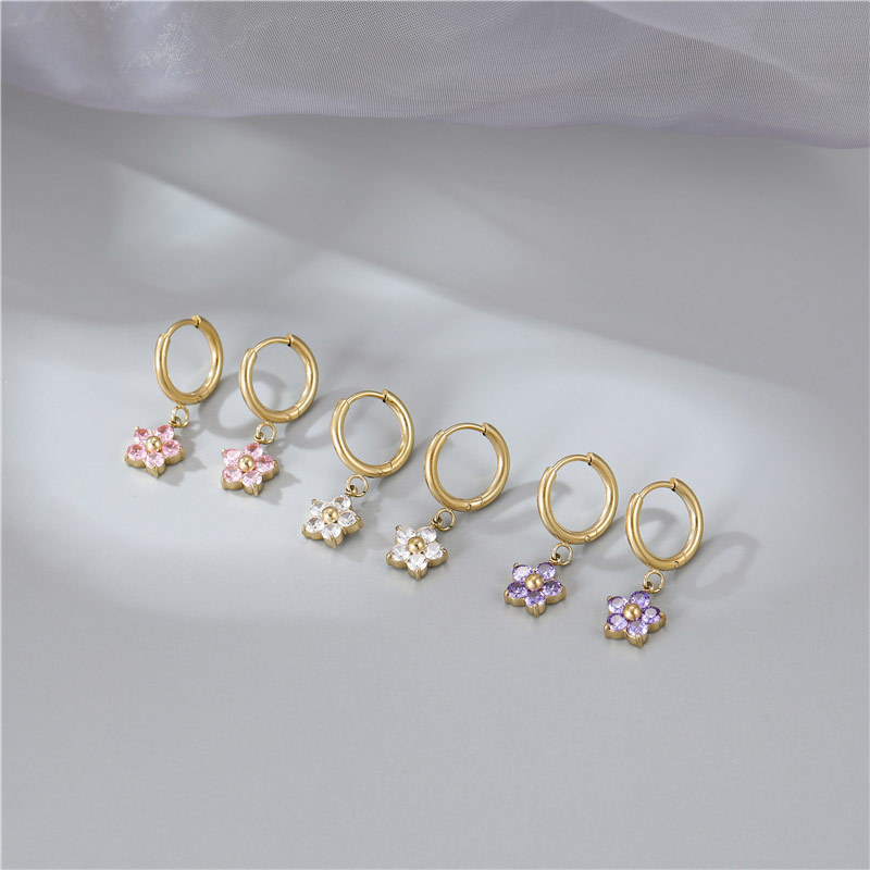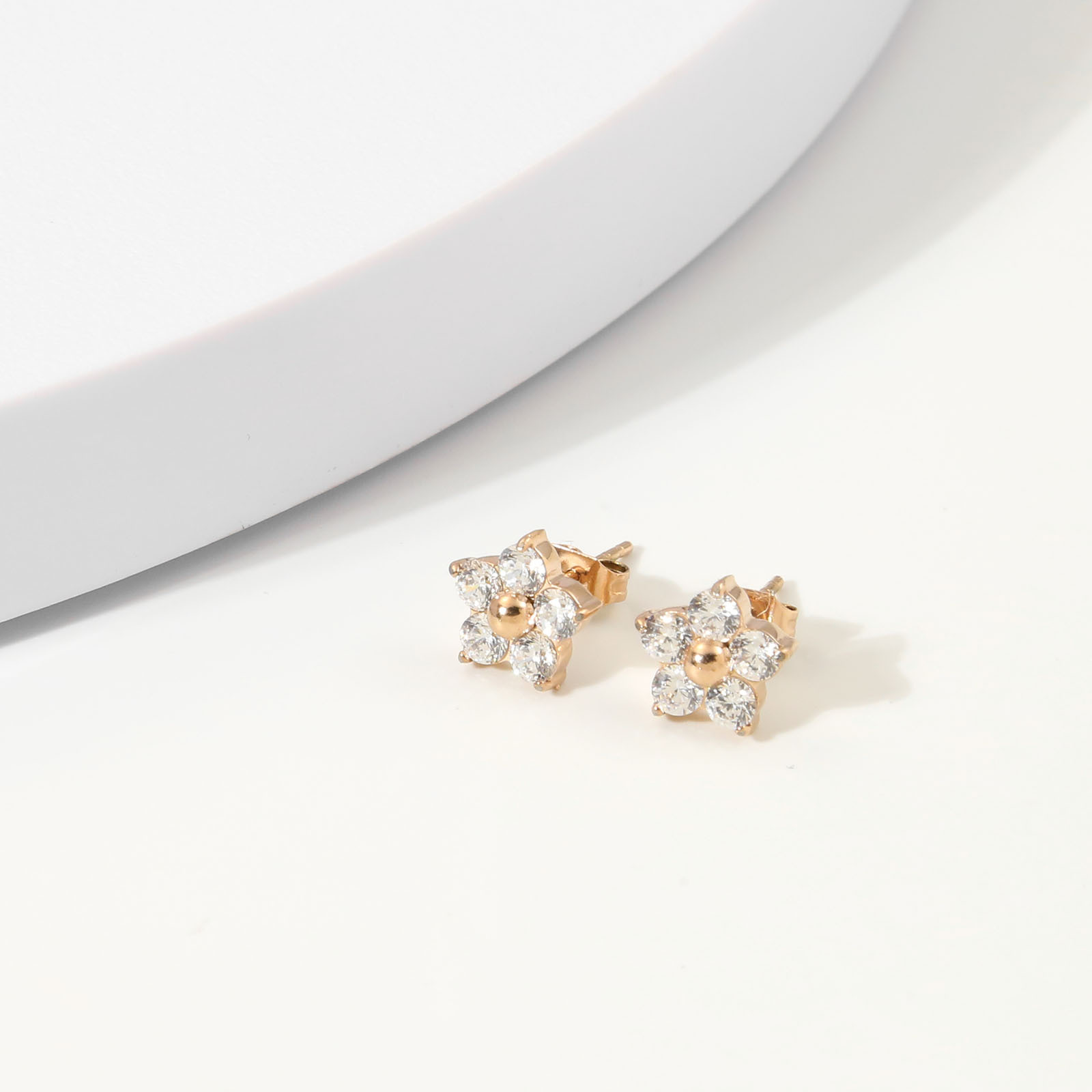 产品名称:2025夏季新款不锈钢花朵耳钉女士高品质镶钻耳环送女友简约百搭
