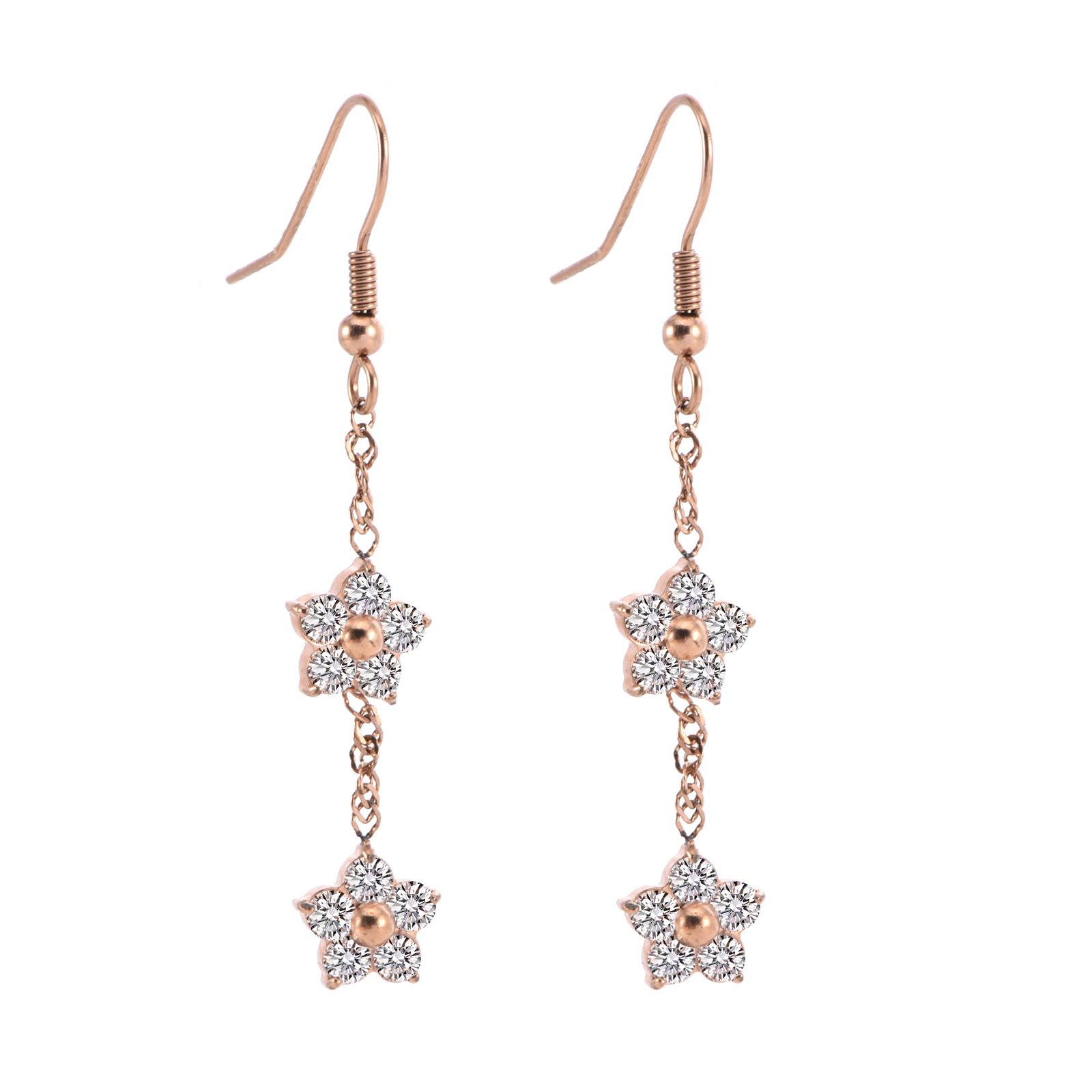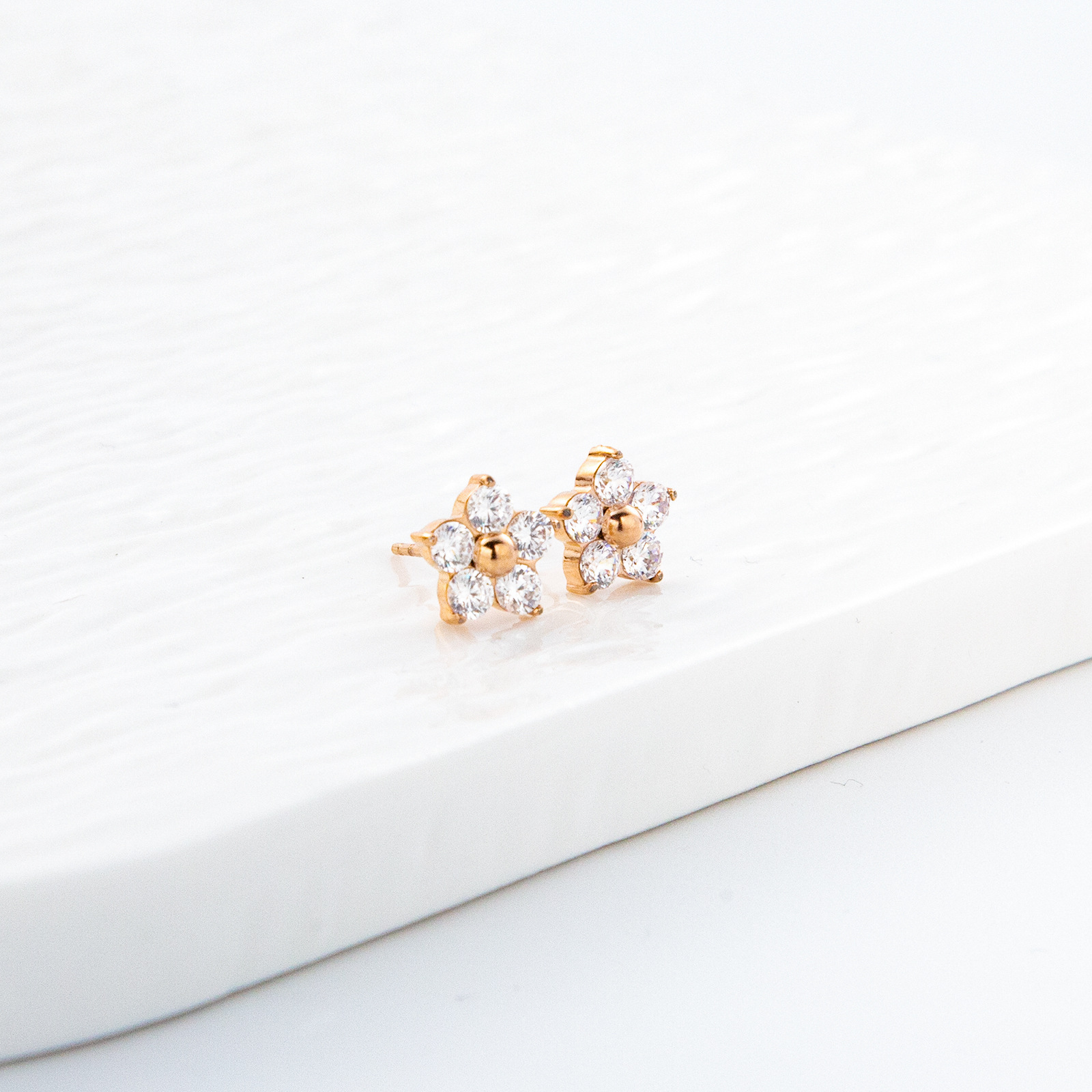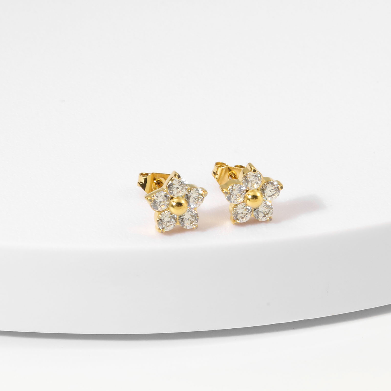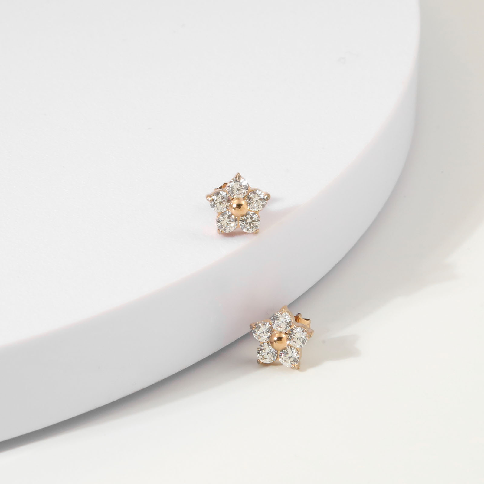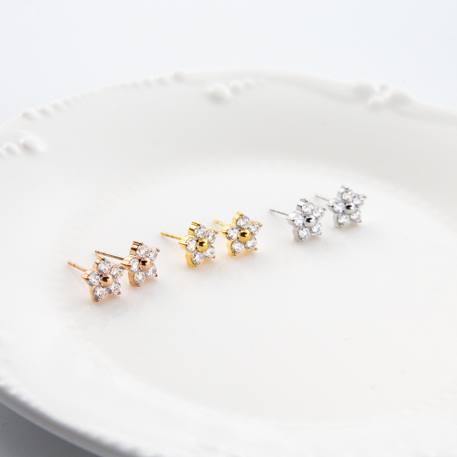 产品名称:2025夏季新款不锈钢花朵耳钉女士高品质镶钻耳环送女友简约百搭