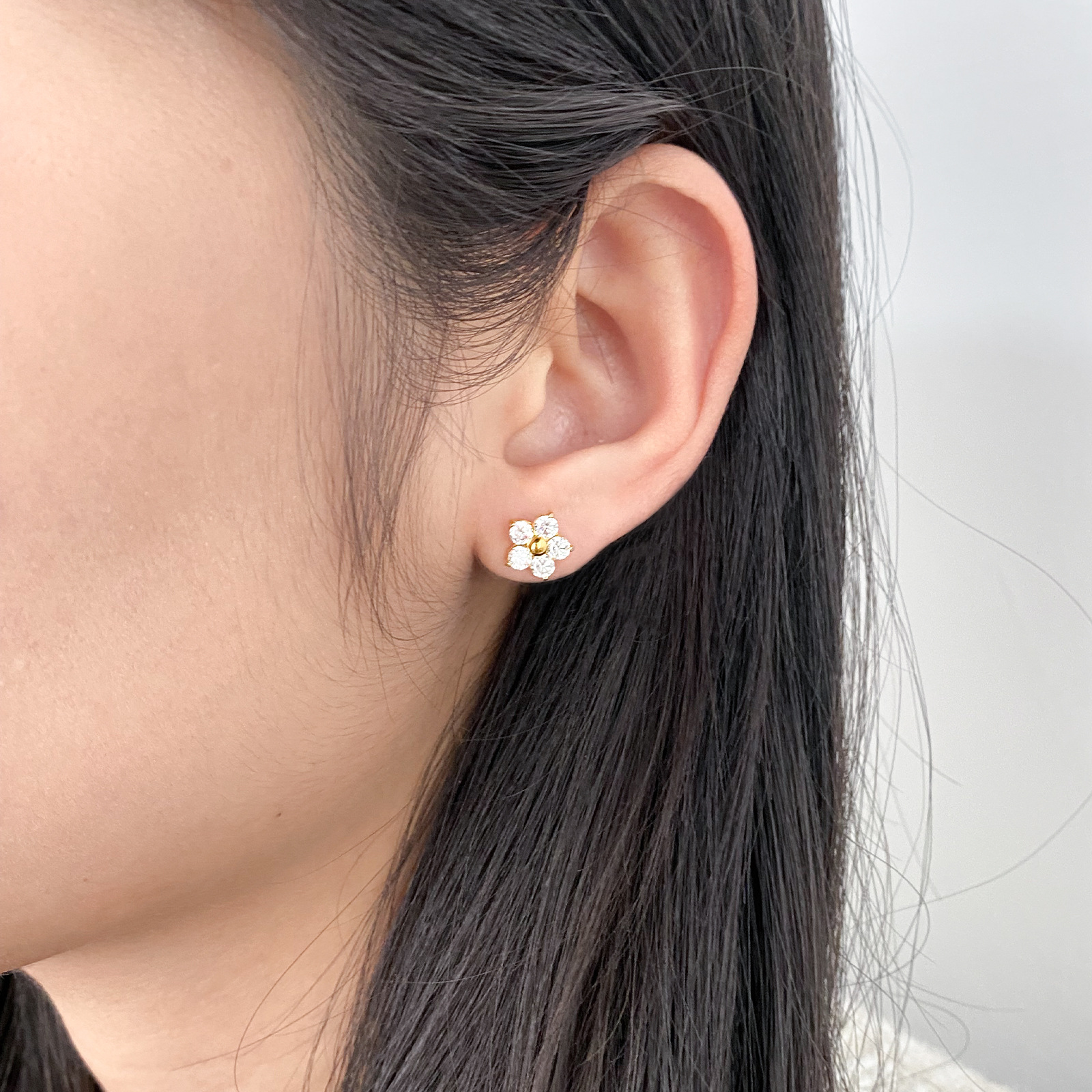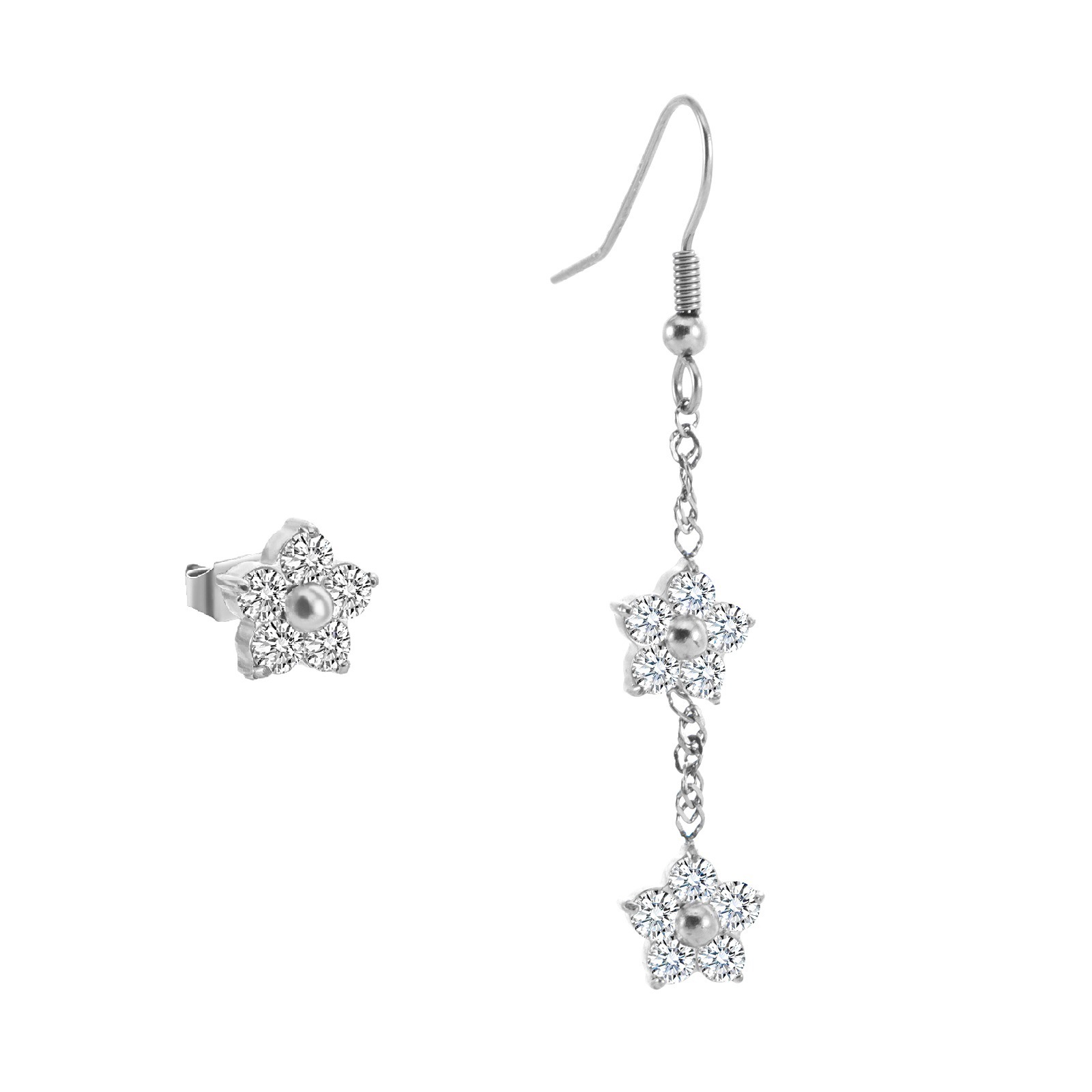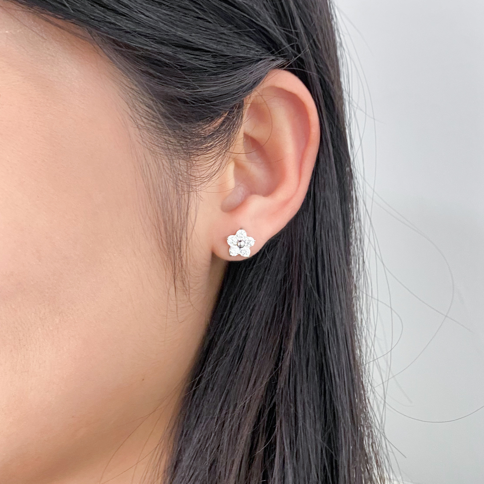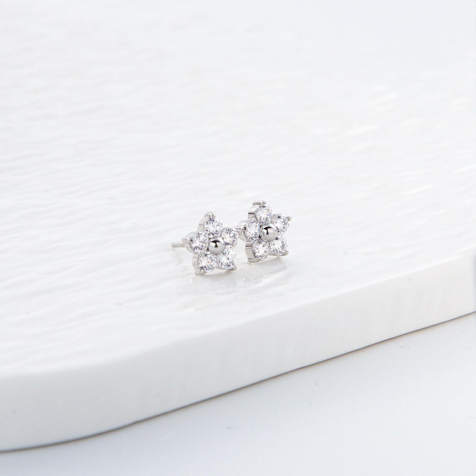 产品名称:2025夏季新款不锈钢花朵耳钉女士高品质镶钻耳环送女友简约百搭