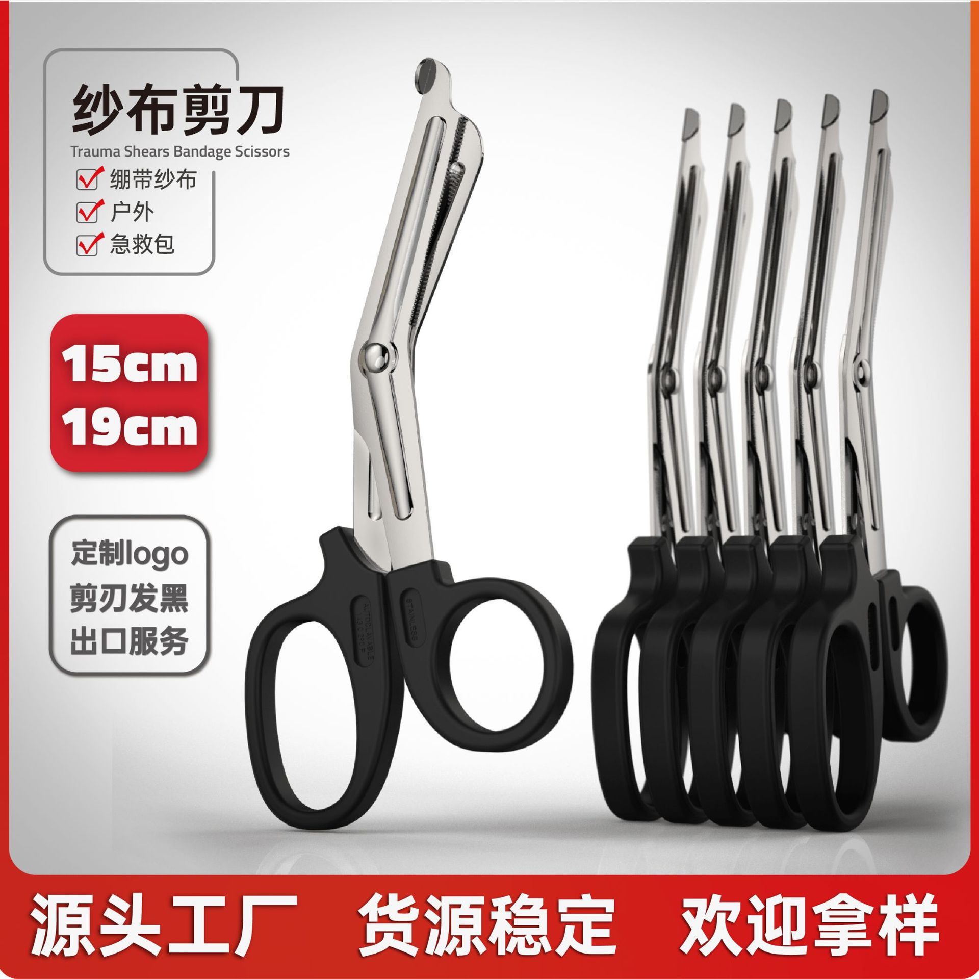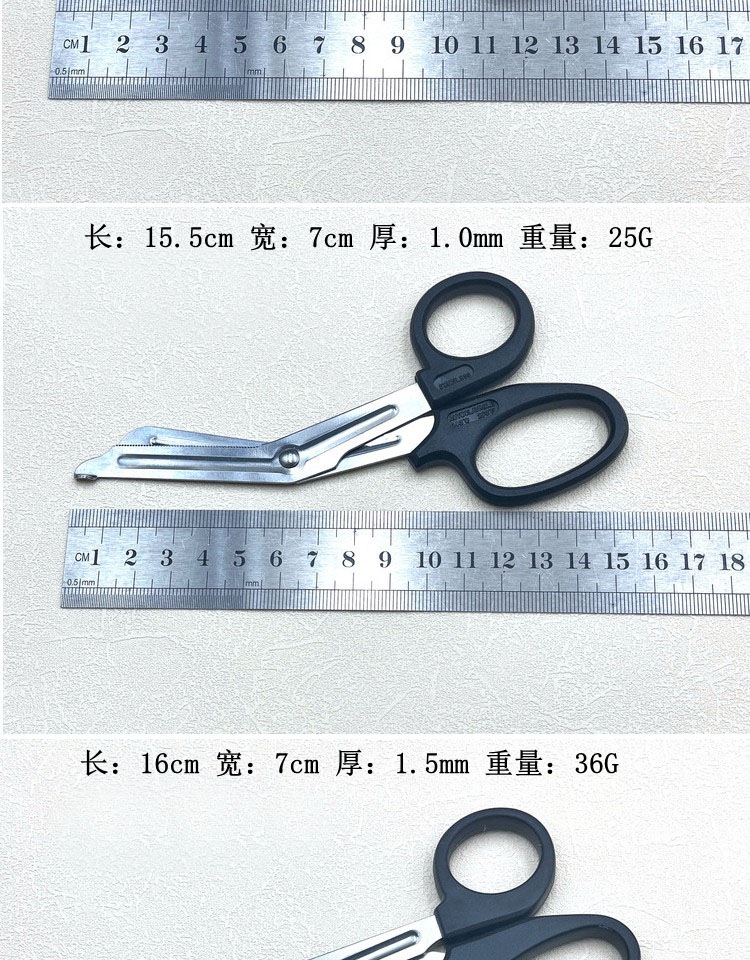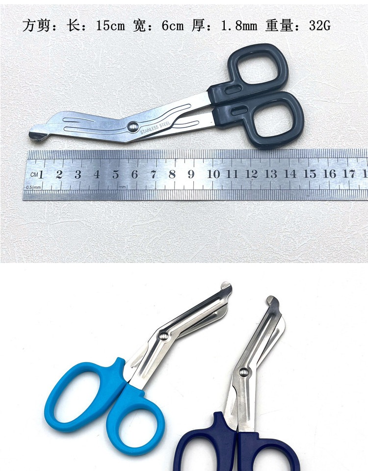 【厂家直销】纱布剪刀绷带剪户外急救弯头剪发黑涂层15cm19cm