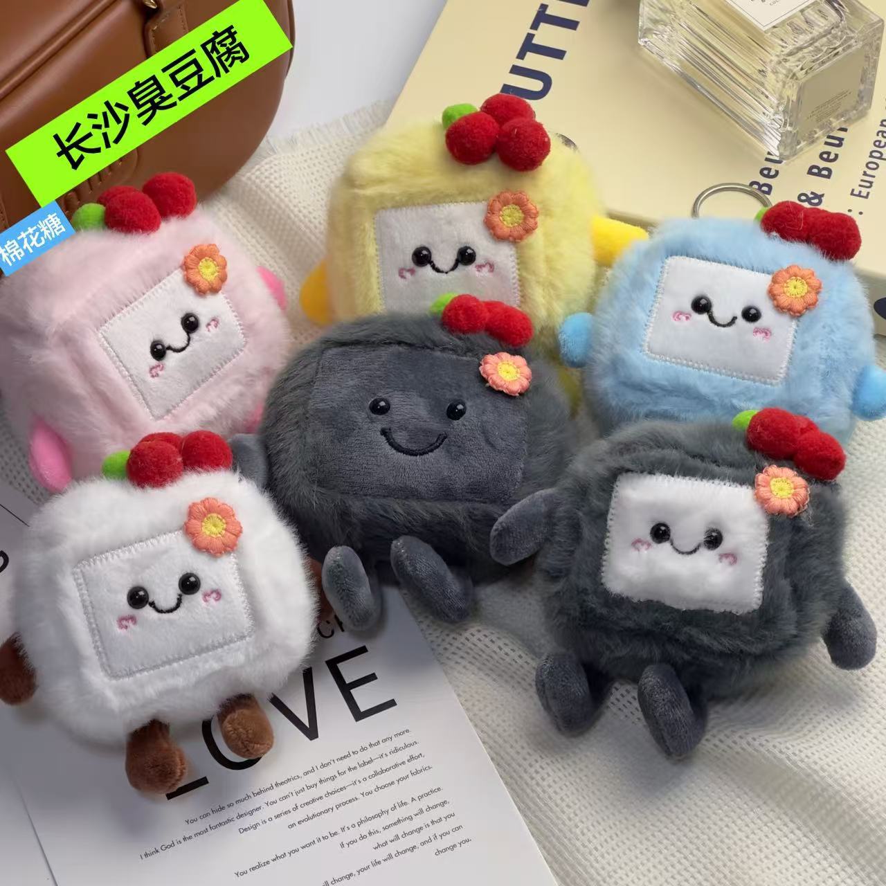 臭豆腐ぬいぐるみ小物、臭豆腐人形、バッグキーホルダー、飾り、卸売、流行、可愛いグッズ