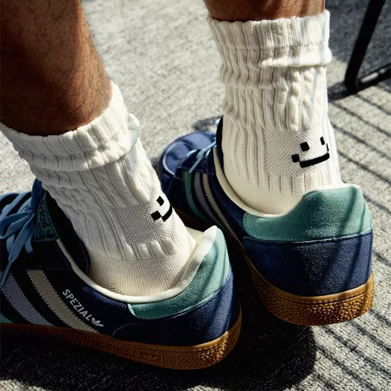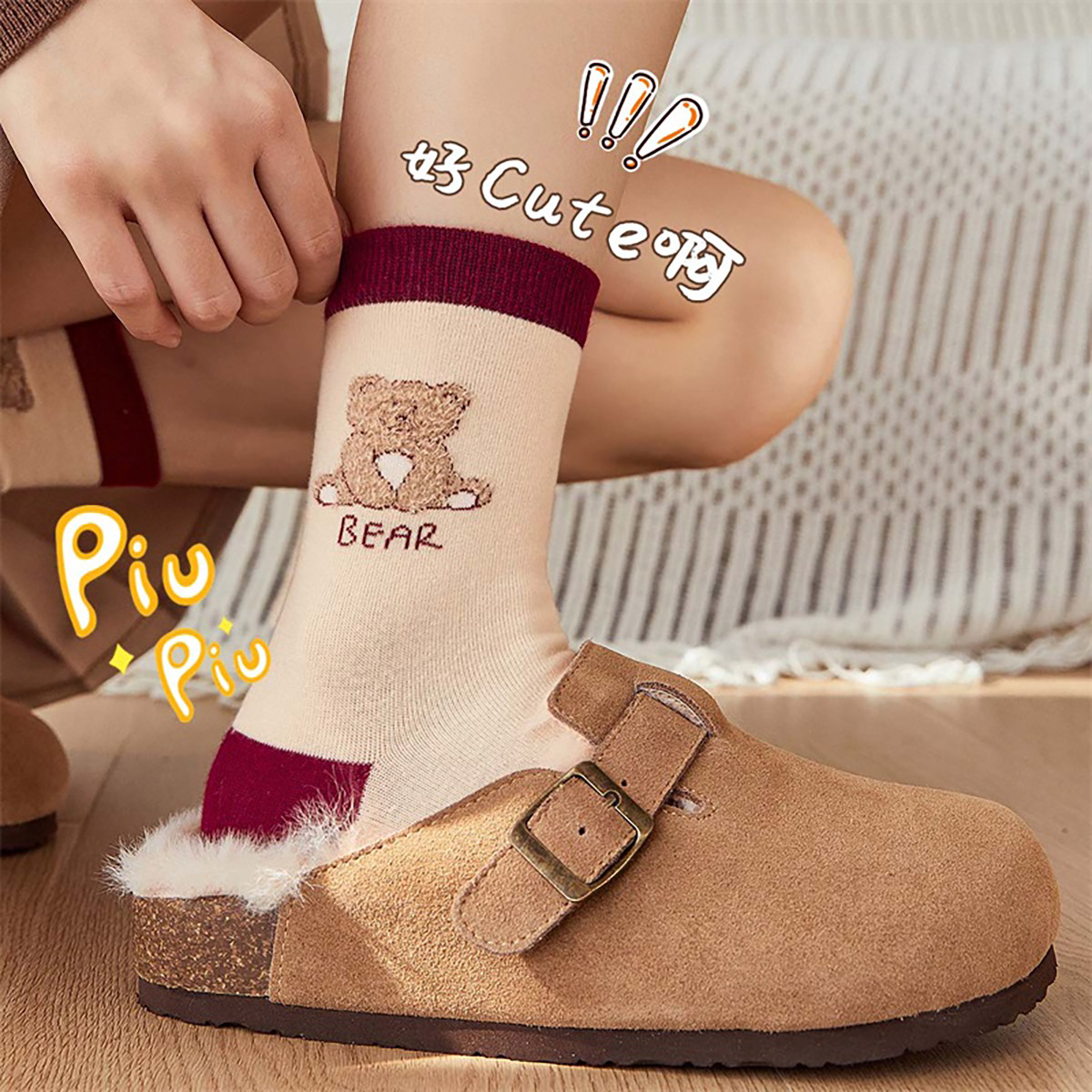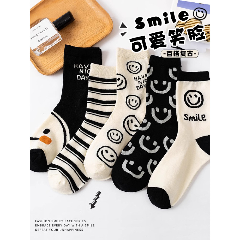 笑顔の靴下の女性の中筒insの潮流は女子学生に似合います。