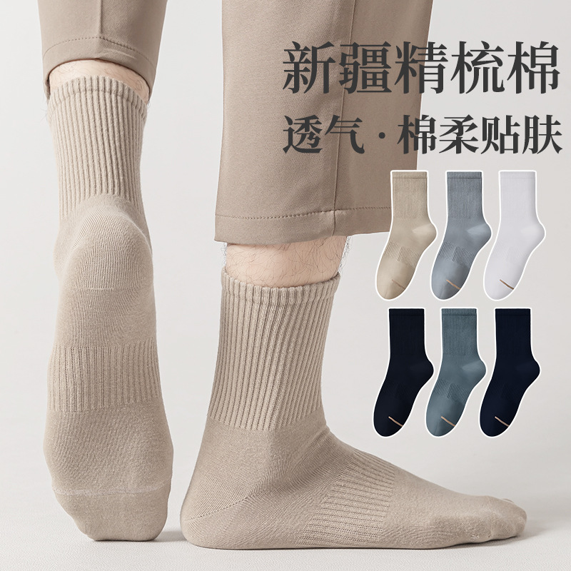 抗菌防臭一体縫い頭抗起球純綿靴下男中筒靴下運動圧力靴下
