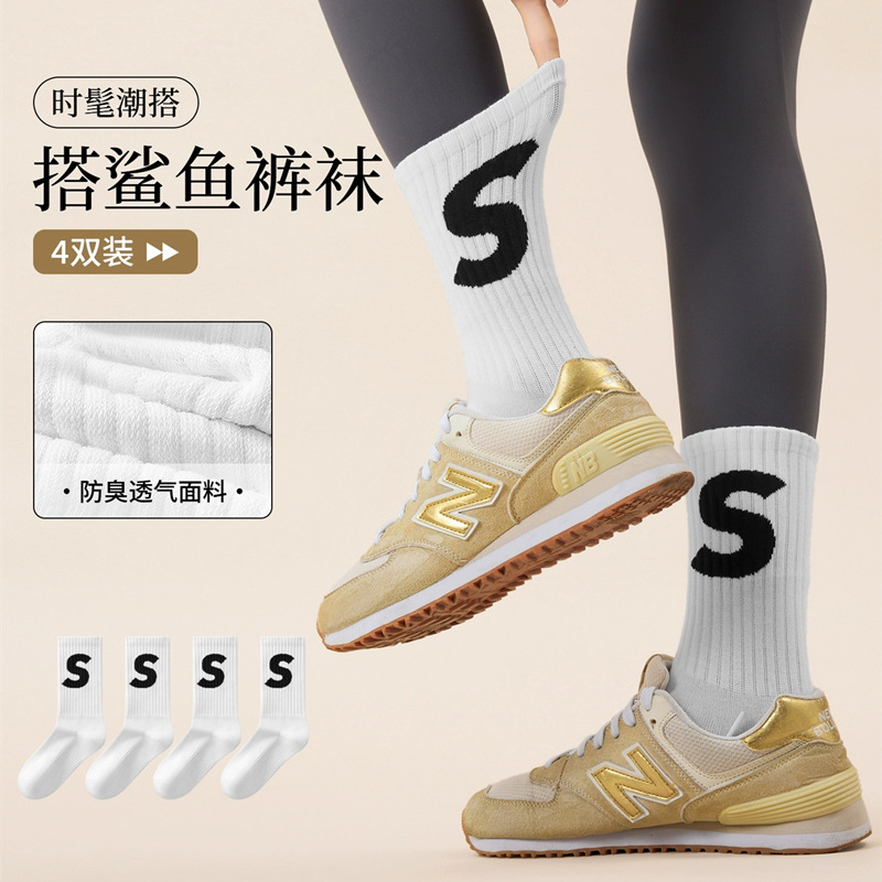 同じタイプのサメのズボンに合う防臭防止の靴下の子供の中の筒の靴下の春と秋の韓国版の外はアルファベットのスポーツのストッキングを着ます。