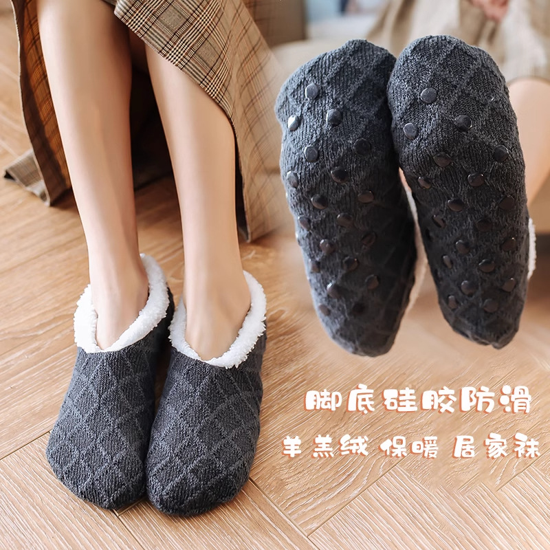 冬用滑り止めフロアソックス、厚くて暖かいラムウールの女性用フロアソックス、滑り止め、抗菌、摩擦防止フロアソックス