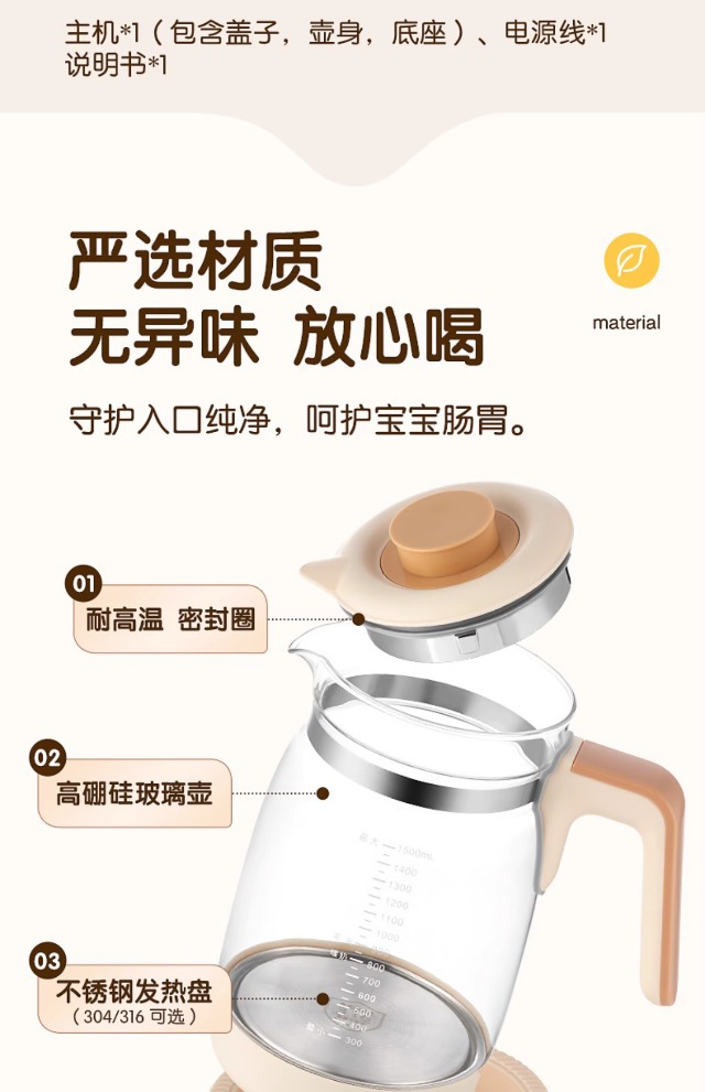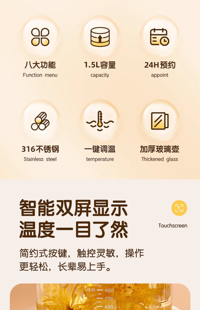 英国全玻璃养生壶家用恒温烧水壶婴儿冲泡奶暖奶加厚2025升级加厚