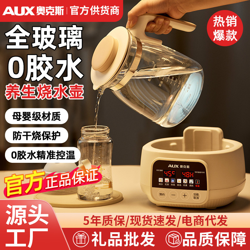 奥克斯全玻璃养生壶家用母婴级调奶器0胶水恒温烧水壶加厚款正品