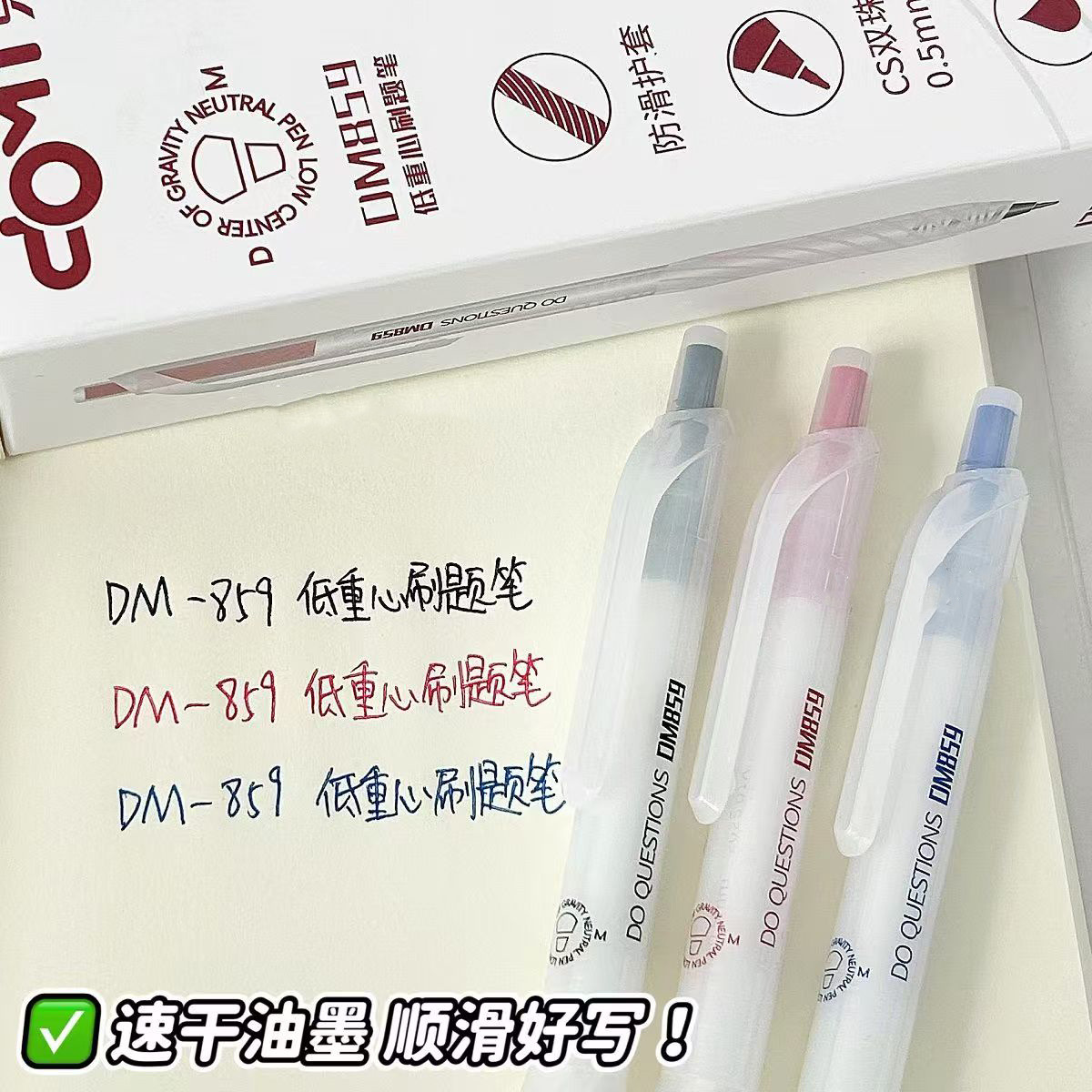 東米DM905速乾は中性ペン0.5赤青黒滑らかな学生試験ブラシ問題サインペンを押す