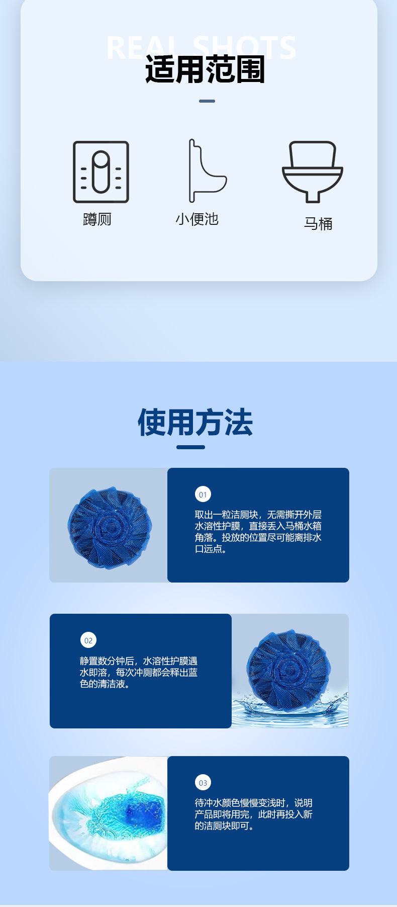 国境を越えて人気の高いトイレ用消臭洗浄剤、強力な洗浄力と除菌効果のあるトイレ用洗浄ブロック、家庭用フレグランスブルーバブル