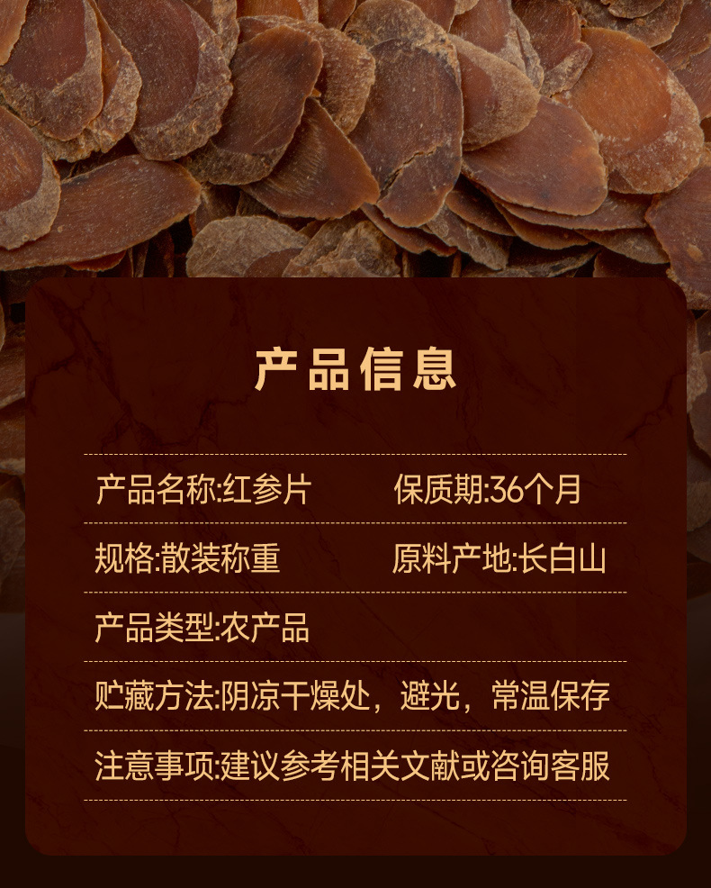 250グラム長白山無糖紅参片メーカー現物卸売り東北紅参スライススープ泡水滋補品