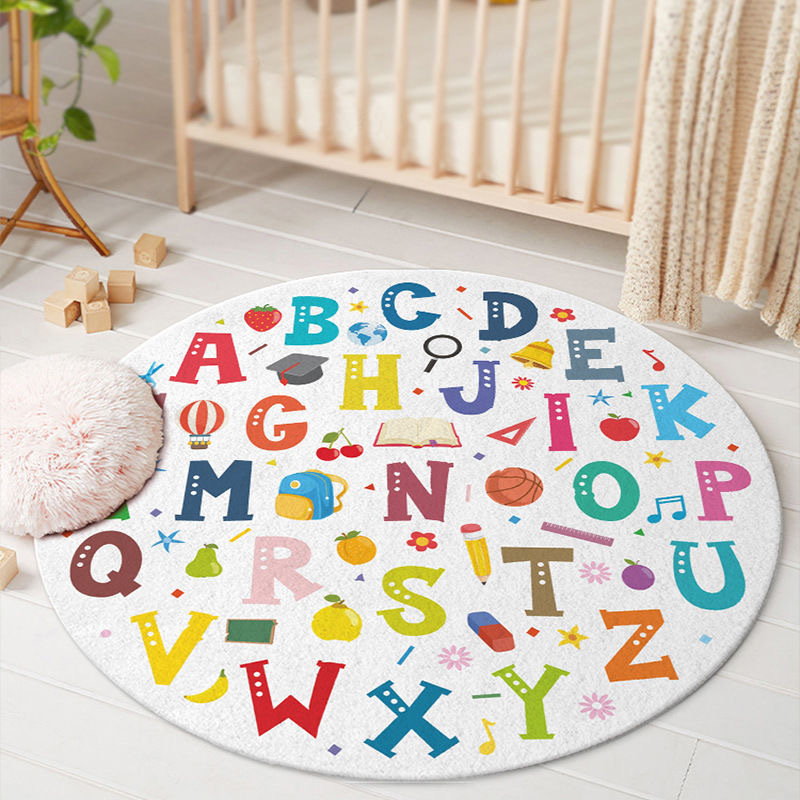 漫画子供部屋カーペットアルファベットラウンドノンスリップリビングルームかわいいカーペットソフトで快適なおもちゃブランケット