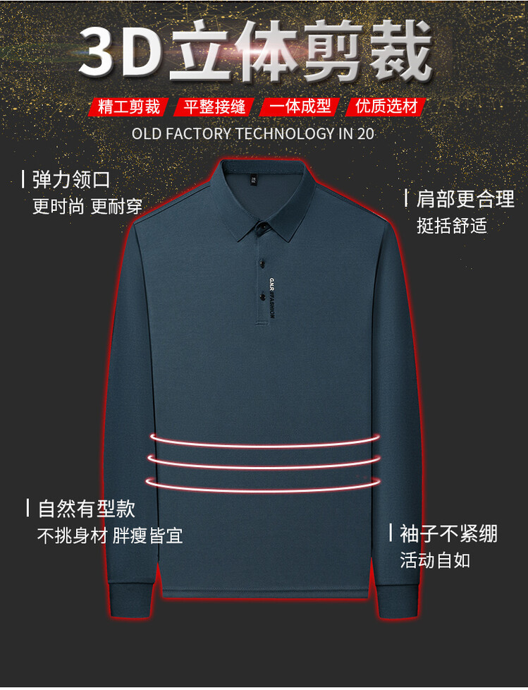 外贸新款纯色翻领长袖T恤男休闲潮流中年男装POLO衫爸爸装上衣秋