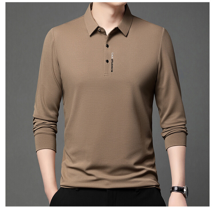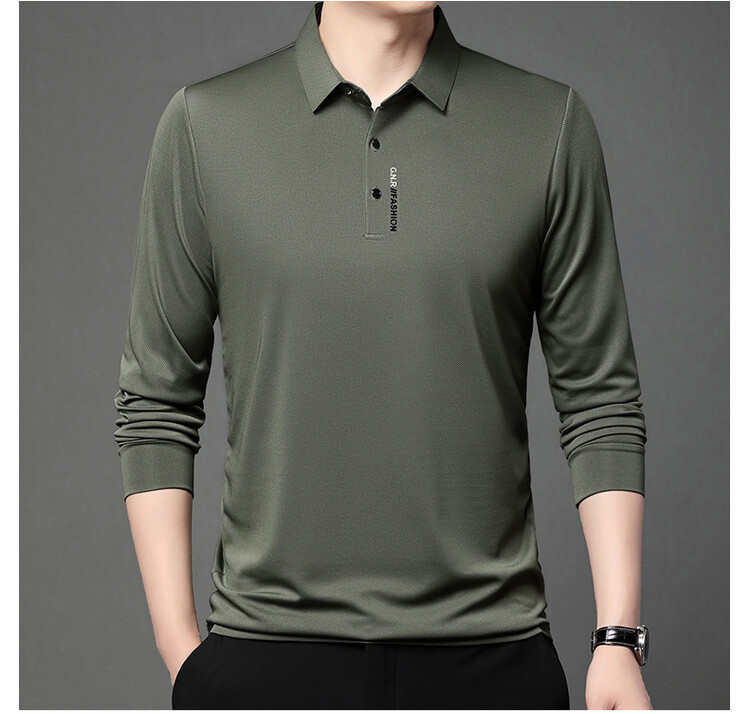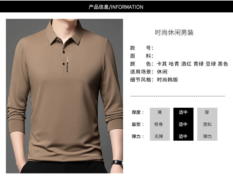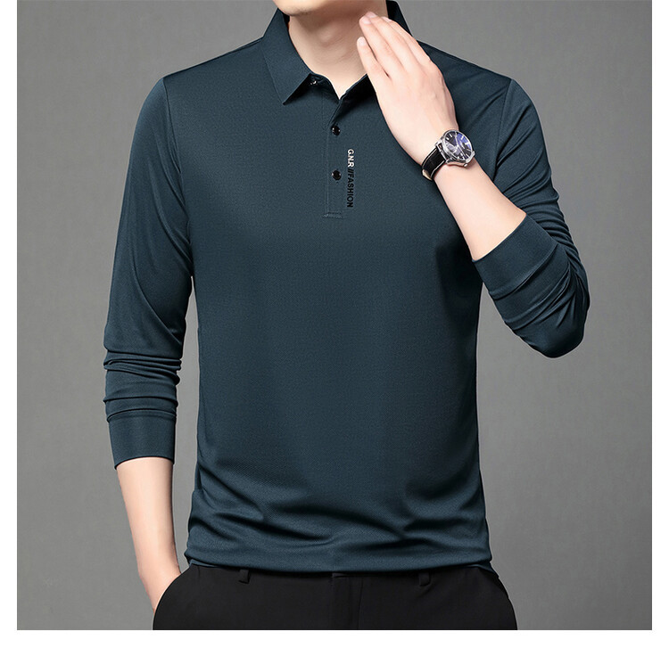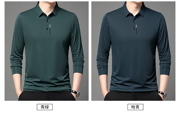 抖音で話題の秋のメンズ長袖Tシャツ、ポロシャツ、ビジネスカジュアル、通気性のあるインナーシャツ、おしゃれで万能なメンズウェア