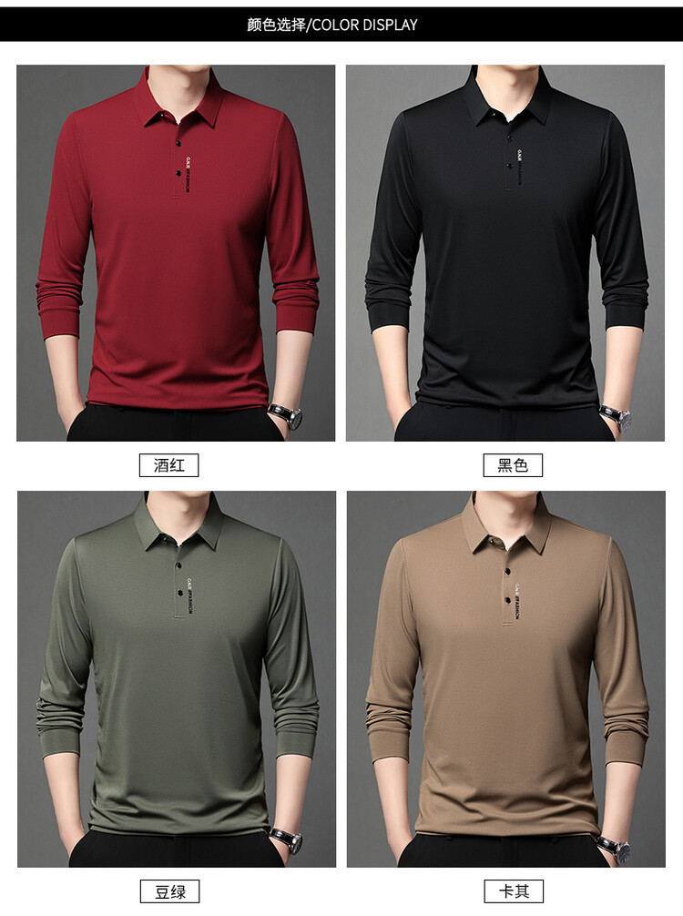 無痕長袖春秋tシャツ男性カジュアル襟付きポロシャツ中年シャツtシャツtシャツtシャツ