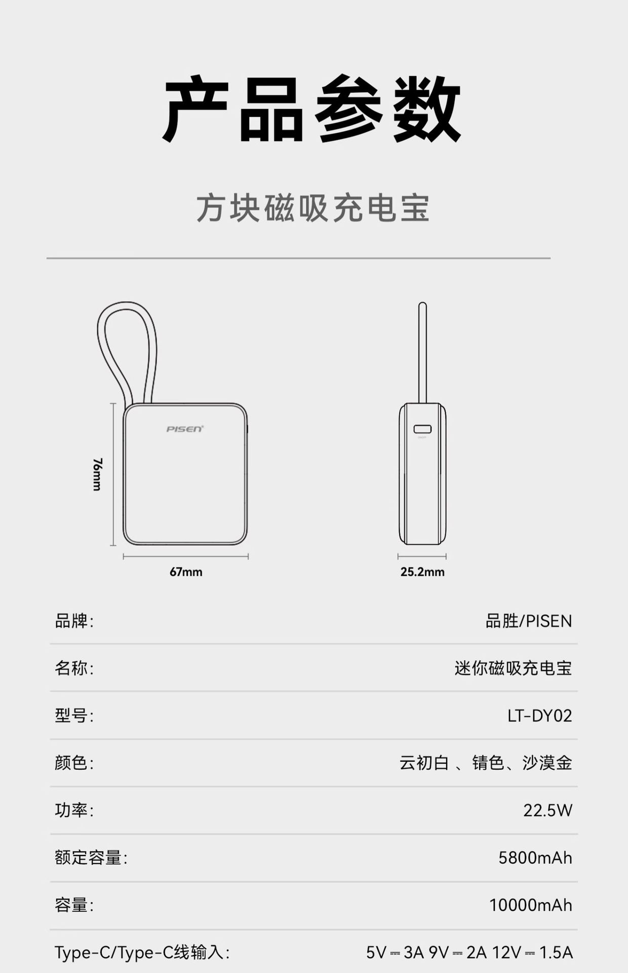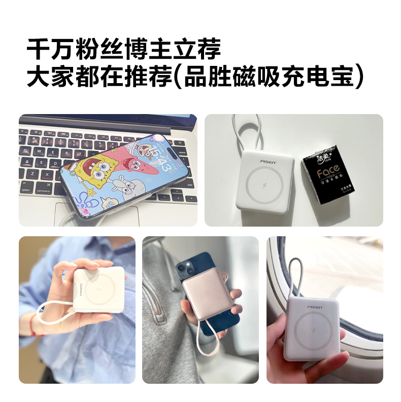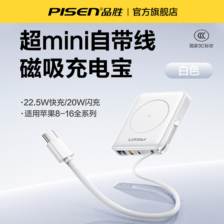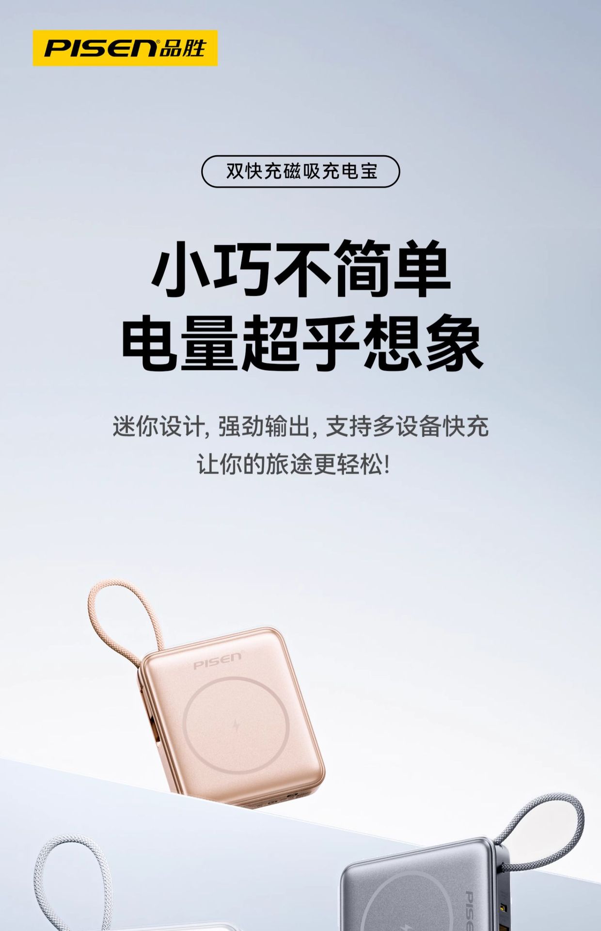 品勝自帯線磁気吸引無線充電宝22.5W速充ミニ携帯電源プレゼントカスタマイズ