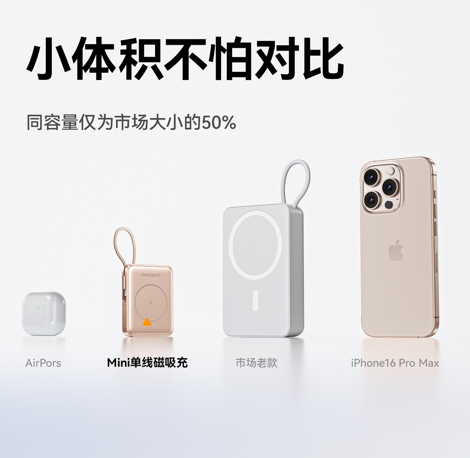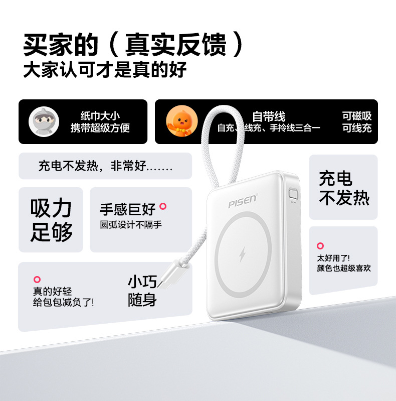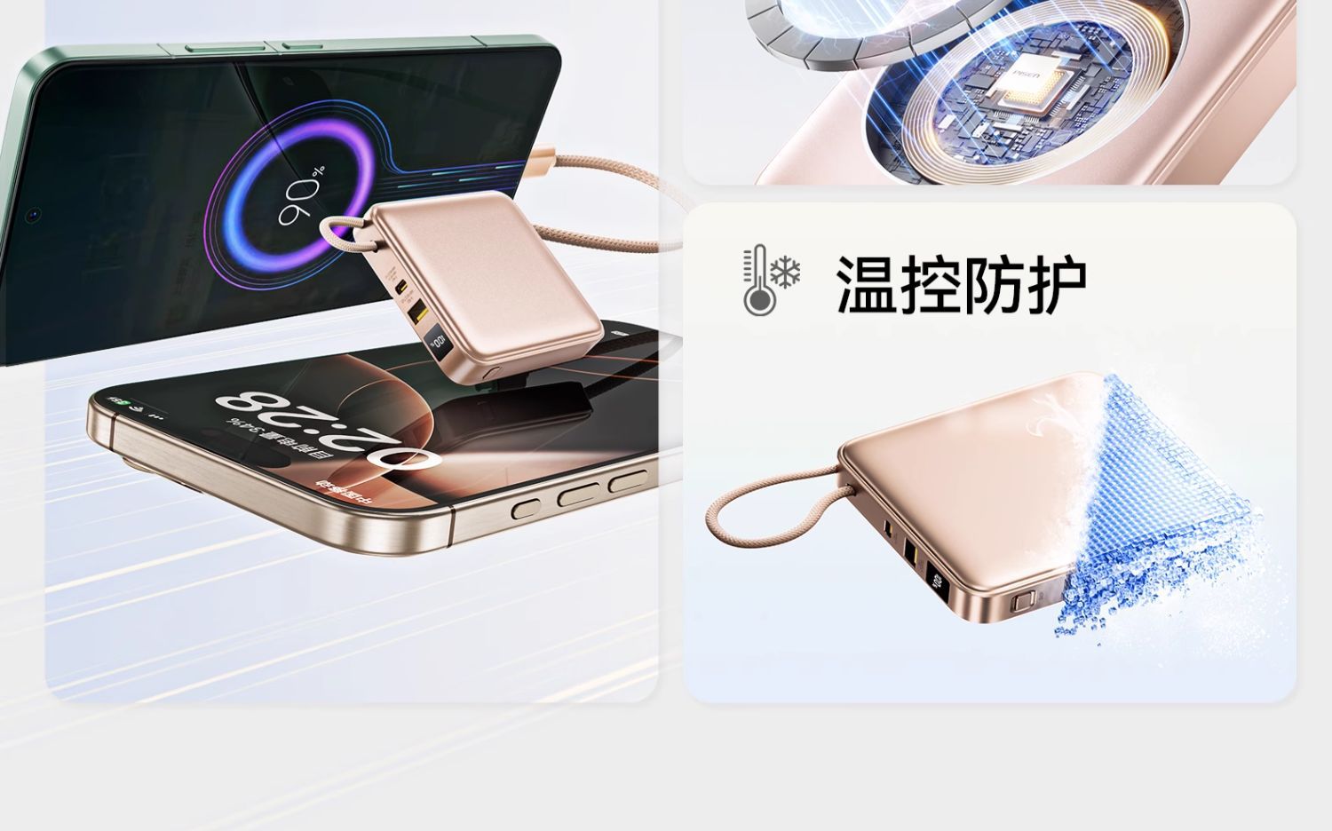 品勝自帯線磁気吸引無線充電宝22.5W速充ミニ携帯電源プレゼントカスタマイズ
