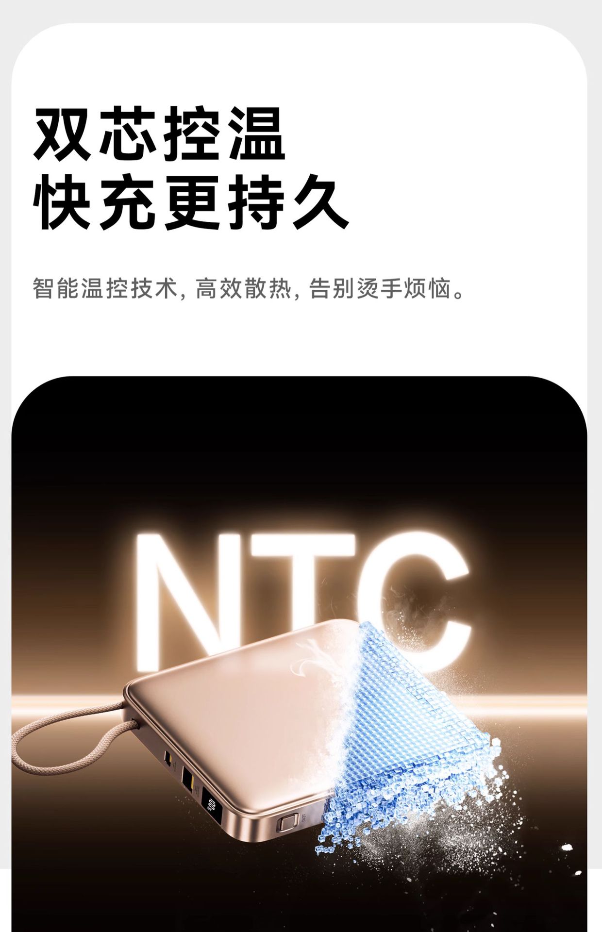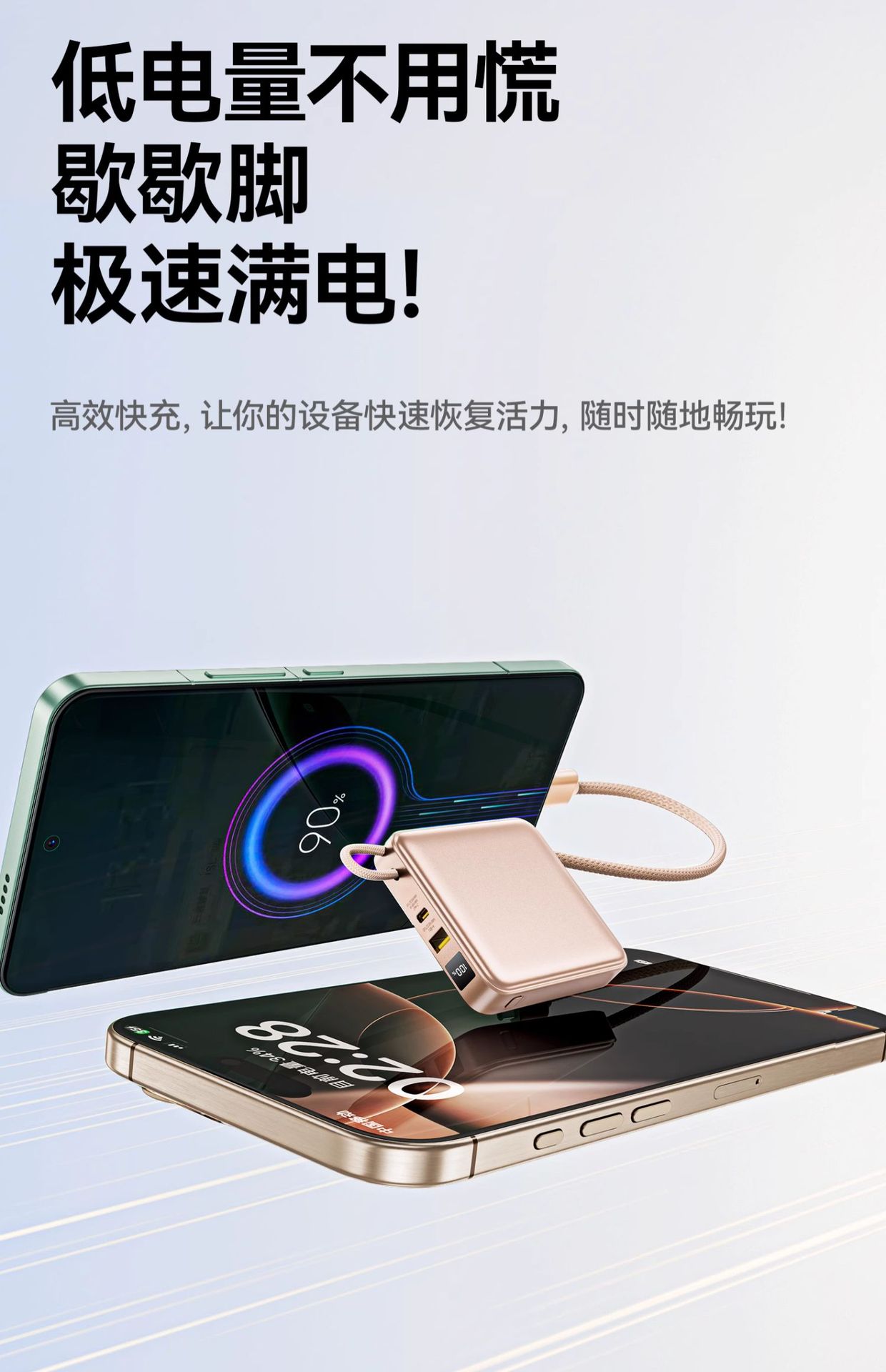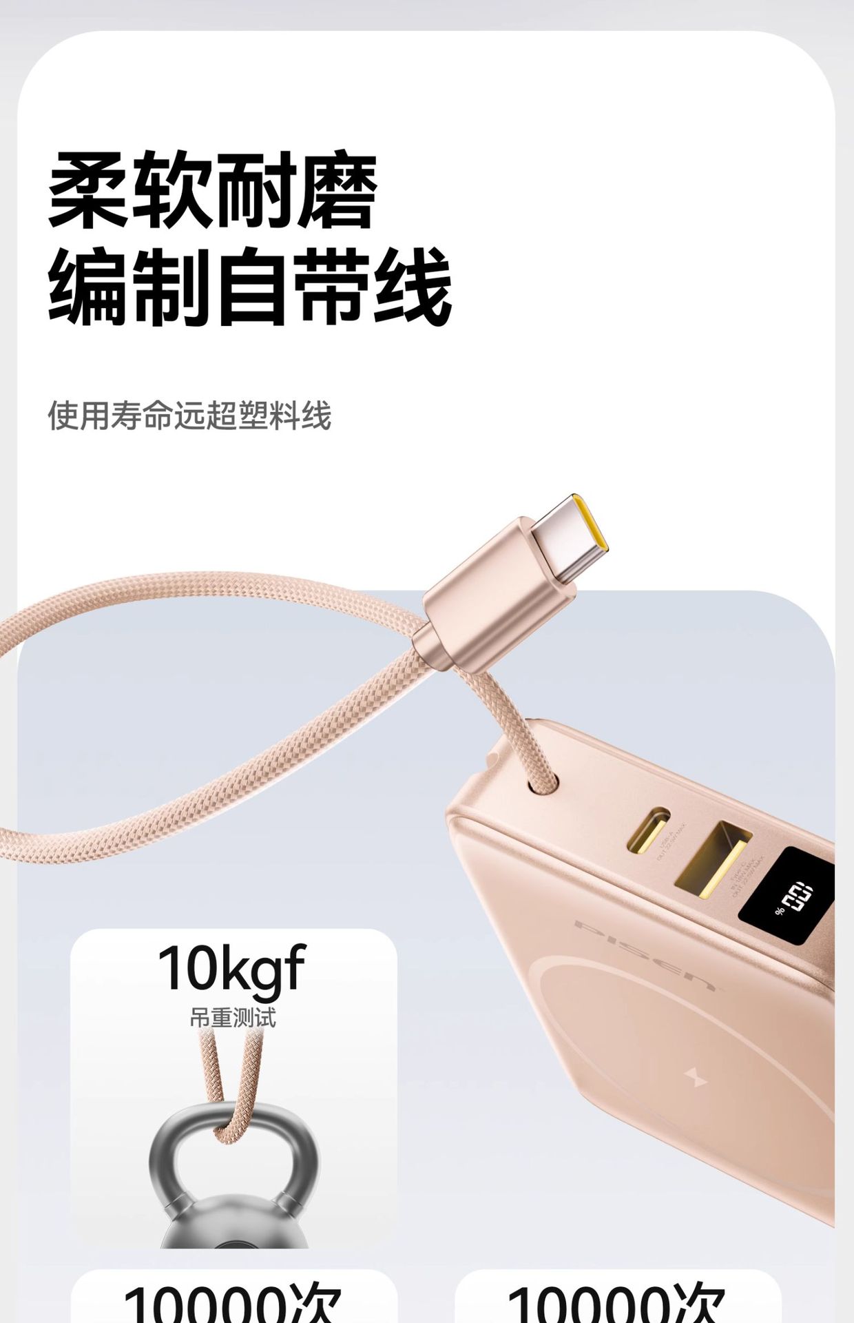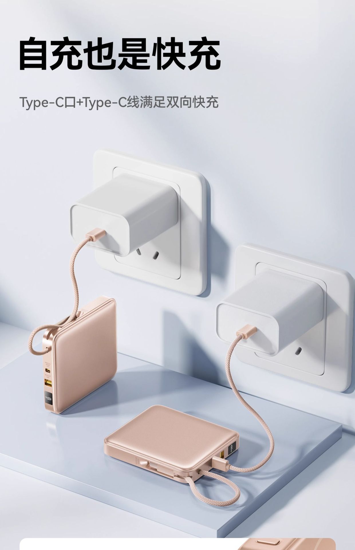 品勝充電宝自帯線22.5w超速充便利ミニ10000ミリアンペア大容量移動電源