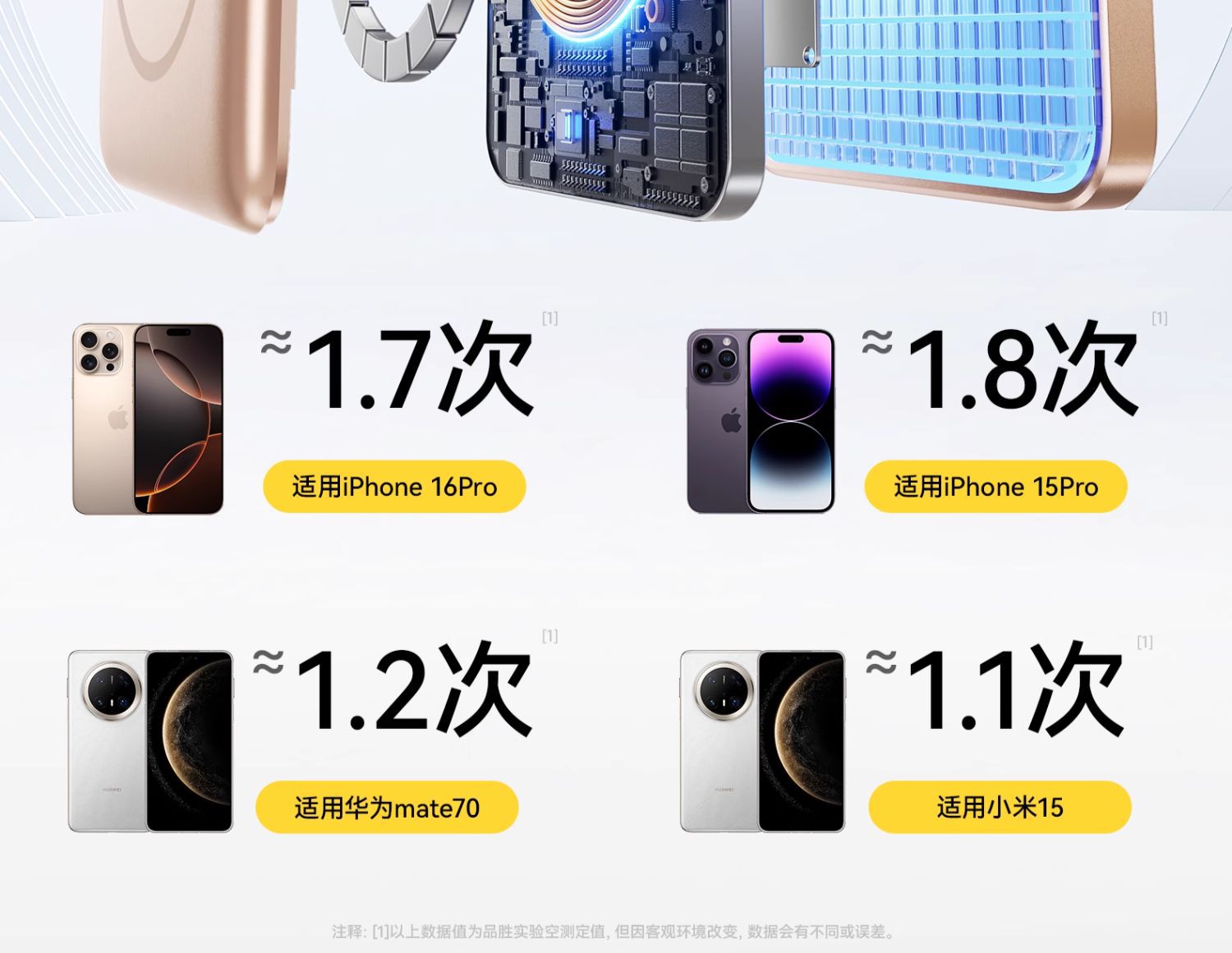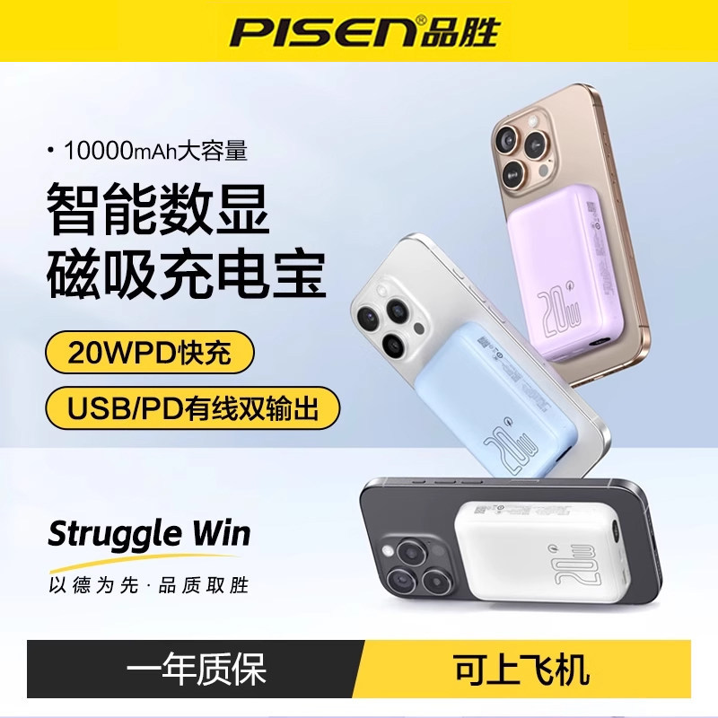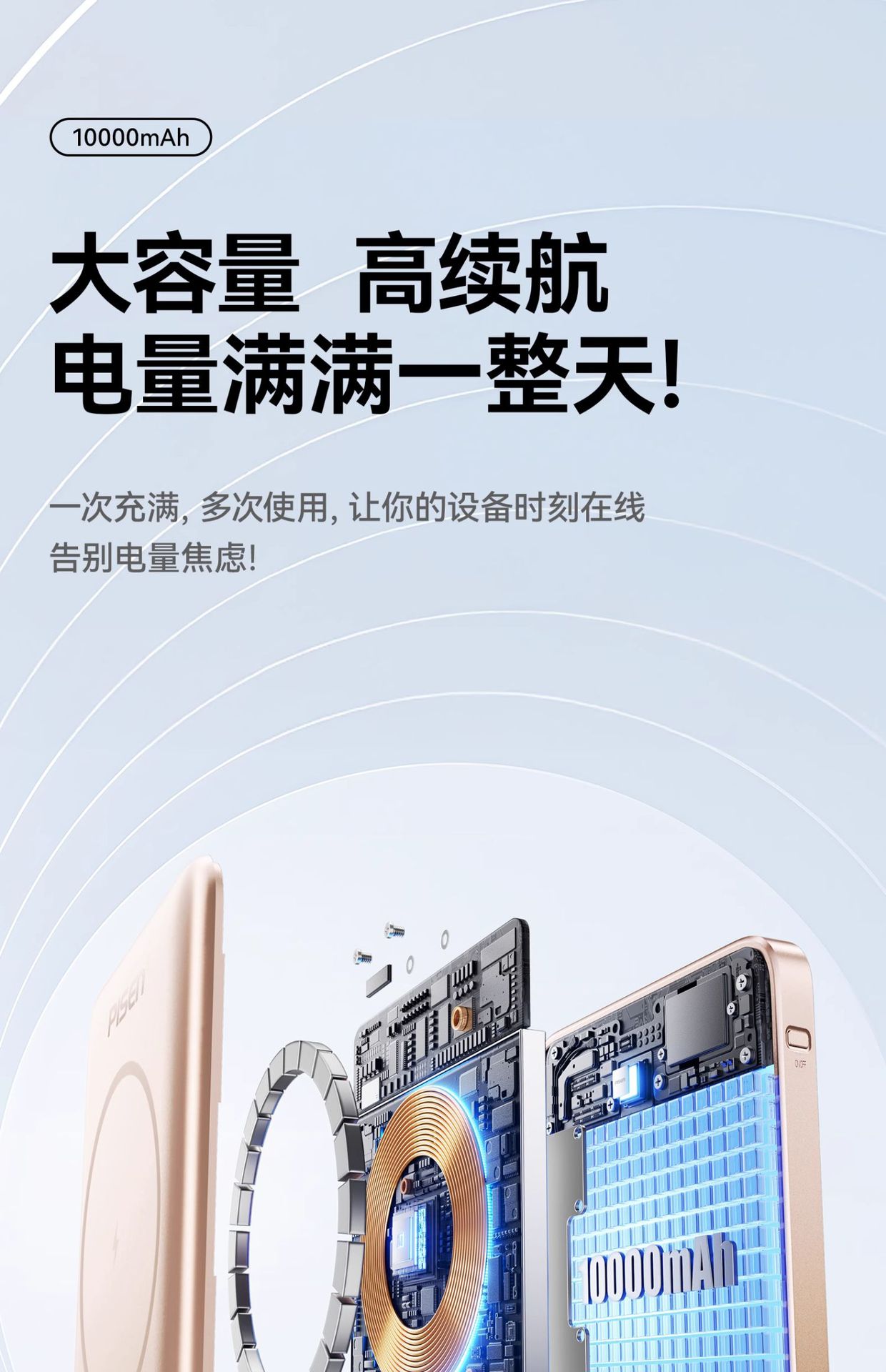 品胜磁吸充电宝磁吸无线快充10000毫安移动电源数显适用于17系列