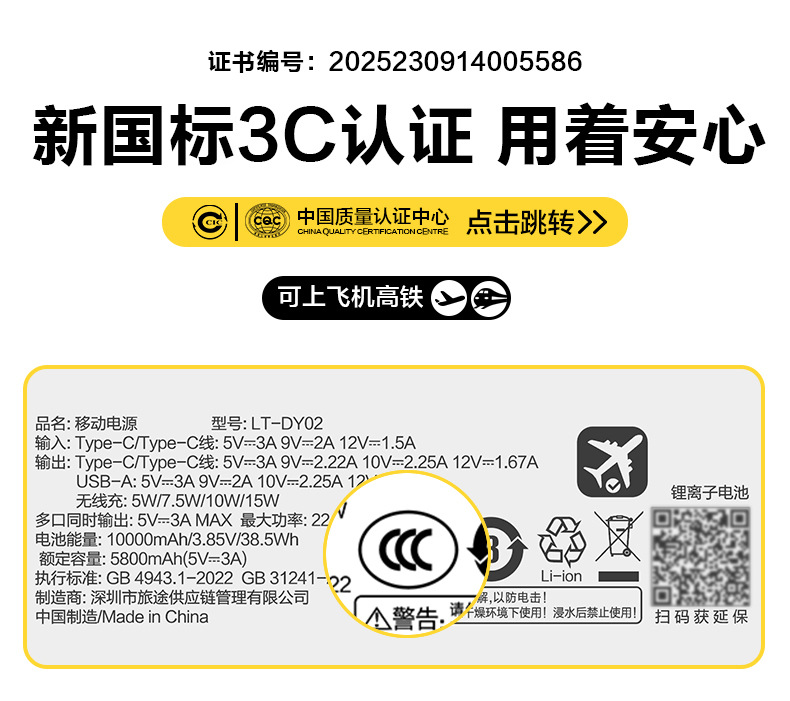 3C充电宝10000毫安渐变色数显充电宝超级快充22.5W便捷式移动电源