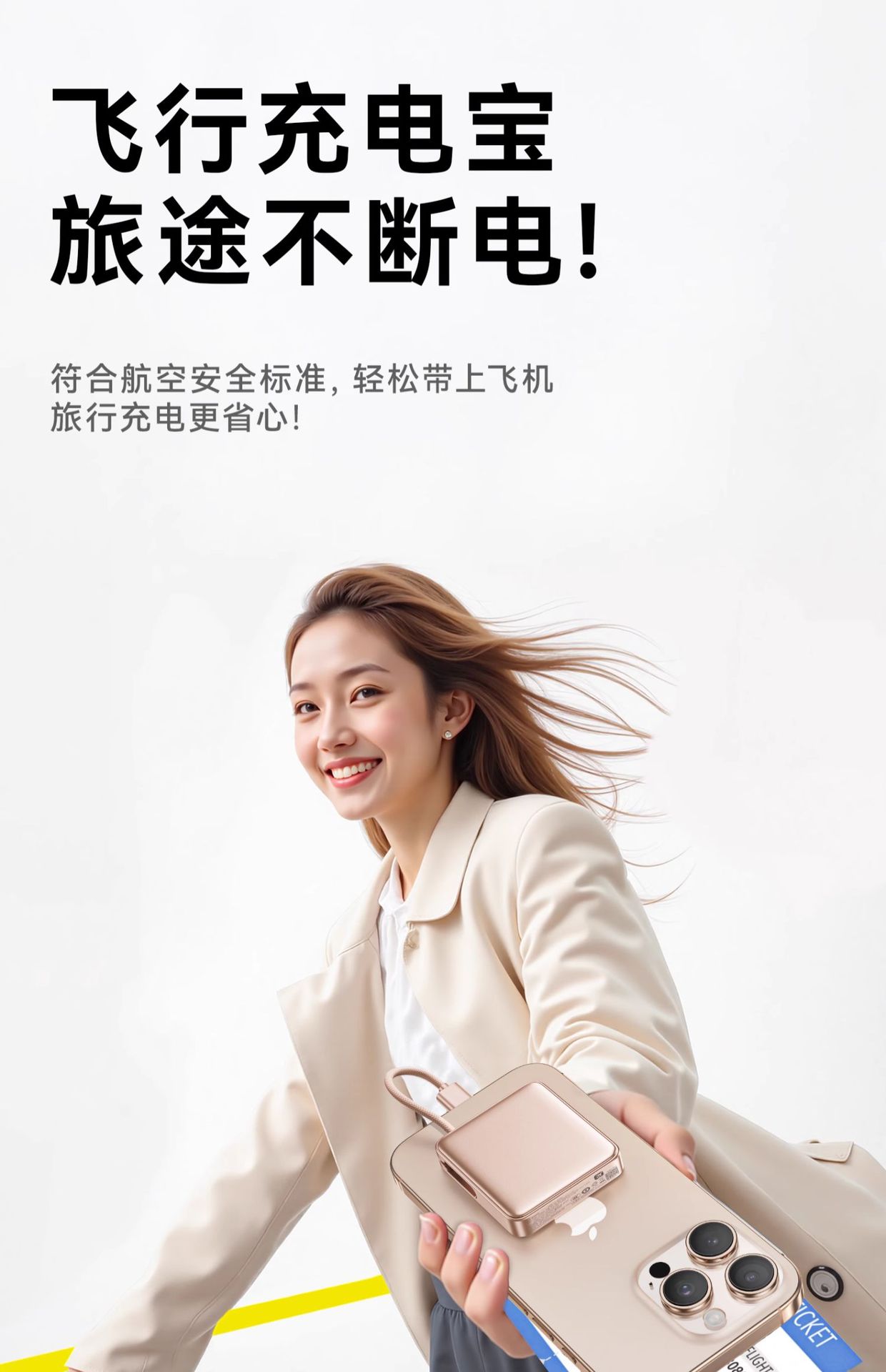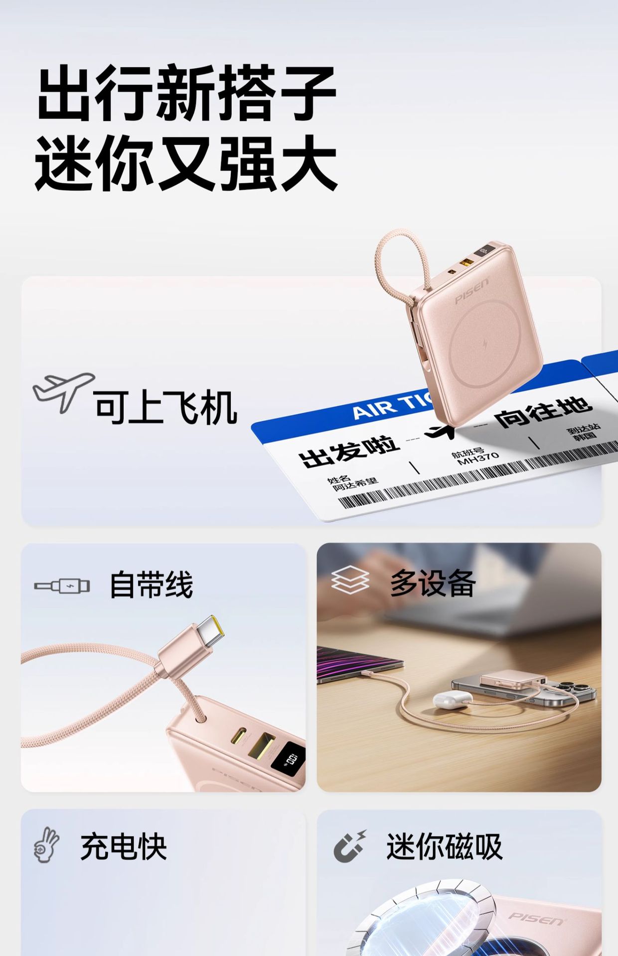 品胜磁吸自带线充电宝10000毫安快充超薄迷你适用iPhone17pro礼品