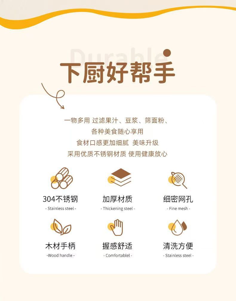 家用豆浆过滤勺不锈钢厨房面粉筛超细腻油渣过滤网烘焙工具套装