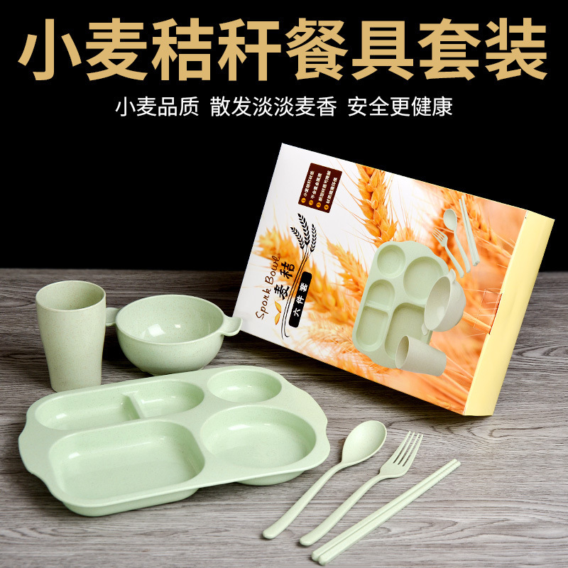 メーカー直売子供用食器六点セット小麦わらフォークスプーン学生用食器セット