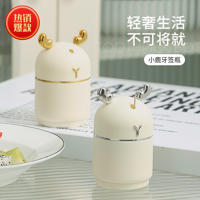 爪楊枝箱アニメ自動創意家庭用防塵収納爪楊枝缶ins小鹿プラスチック押圧式爪楊枝筒