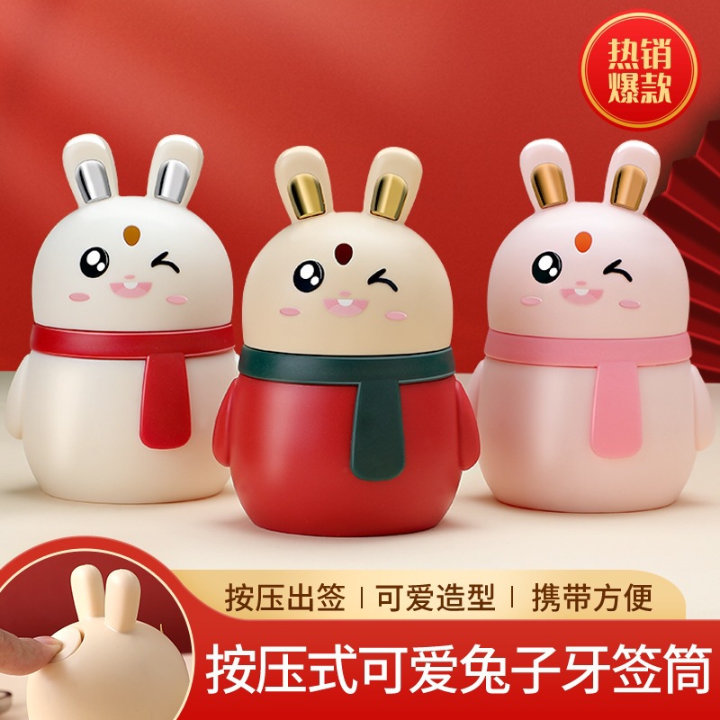 漫画かわいい押圧式楊枝缶楊枝瓶家庭用ウサギ楊枝筒ホテル創意楊枝箱