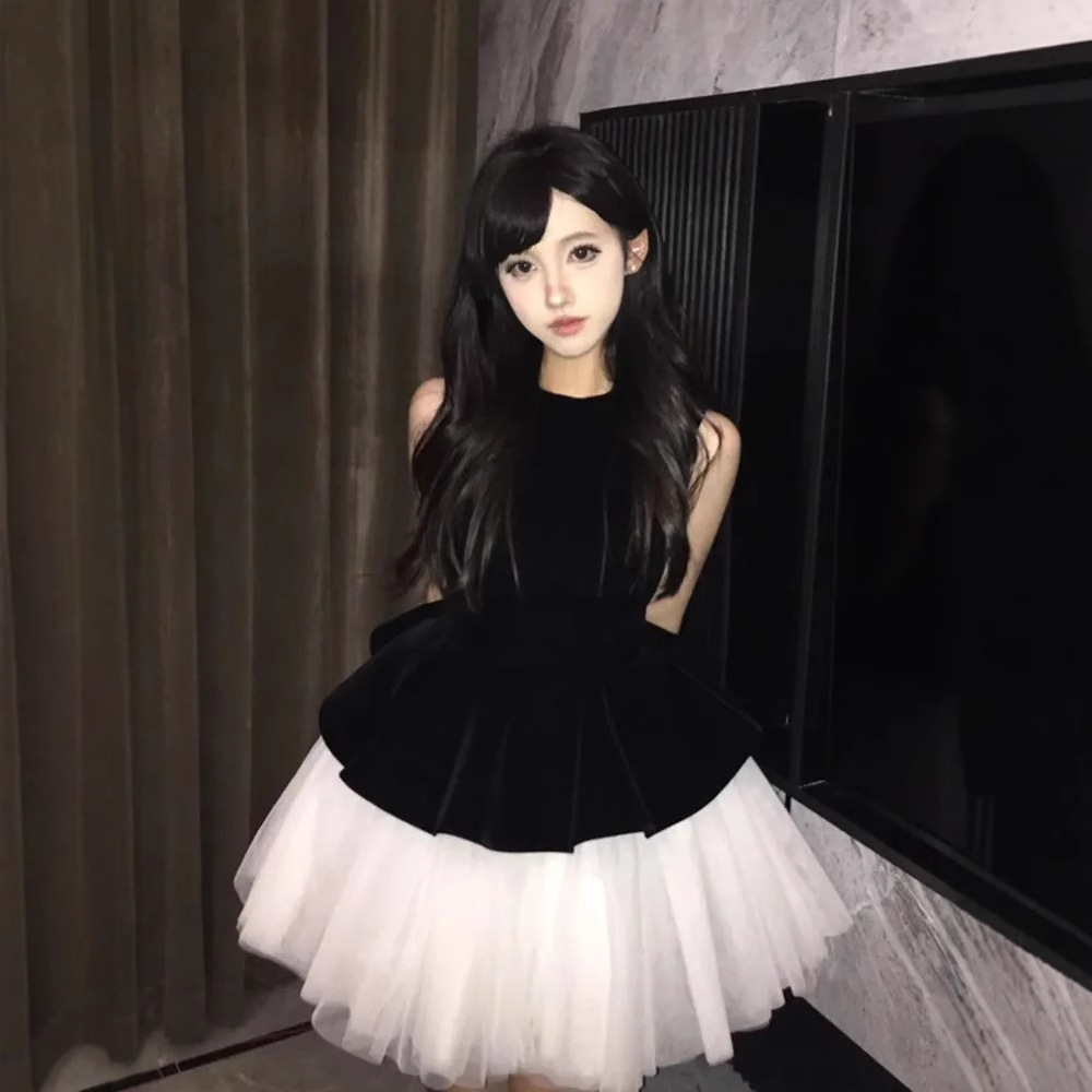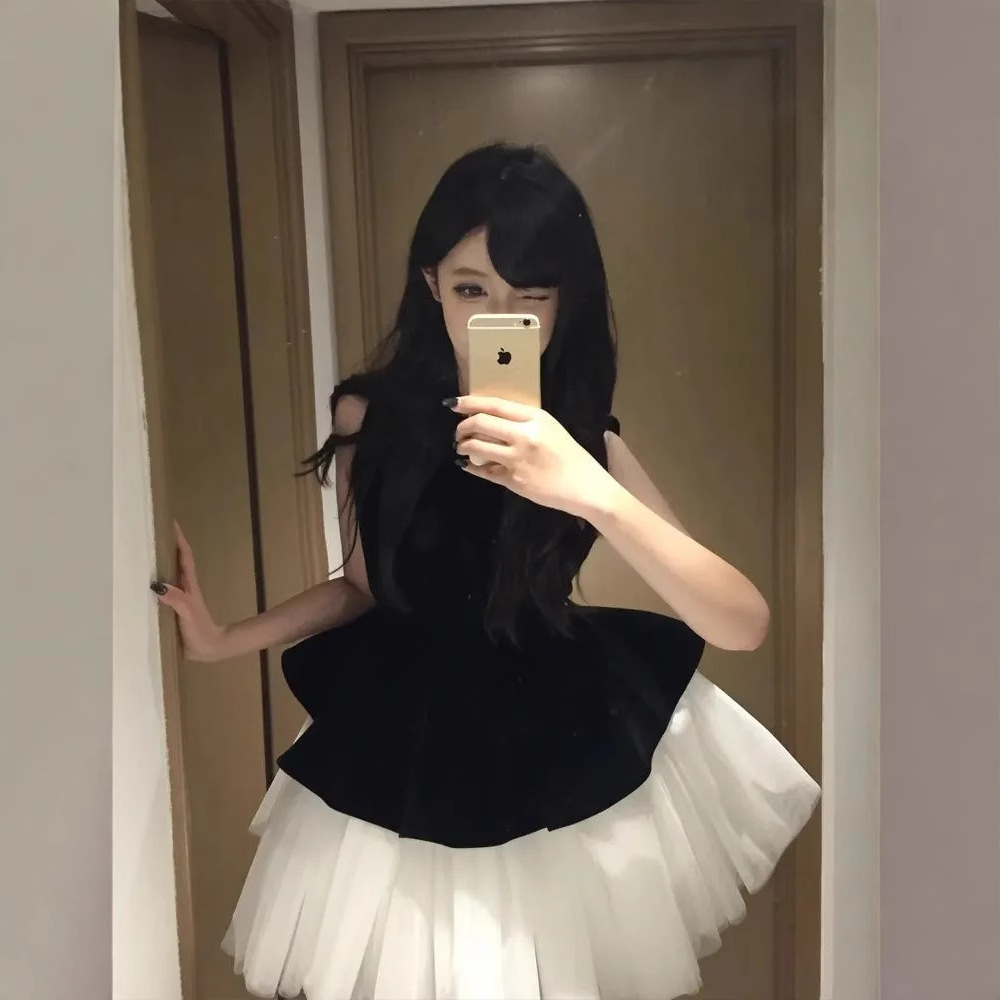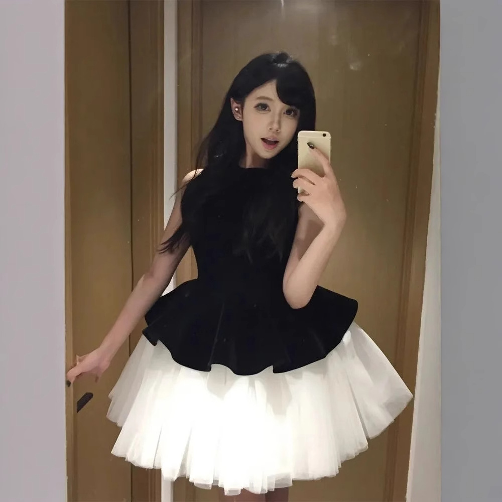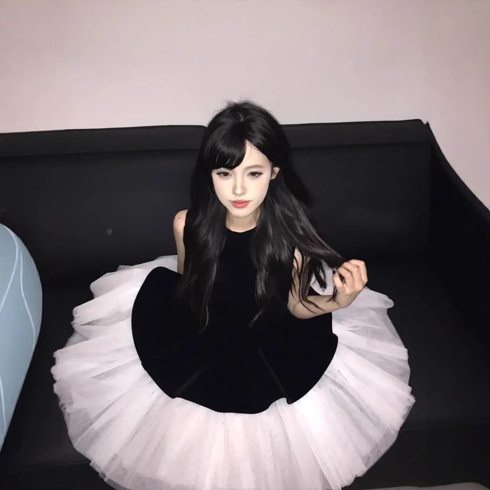 甘いバレエ風のスカートのベルベットは蓬蓬姫のスカートの女性の夏に腰を収めてやせているノースリーブのベストのワンピースをつなぎ合わせます。