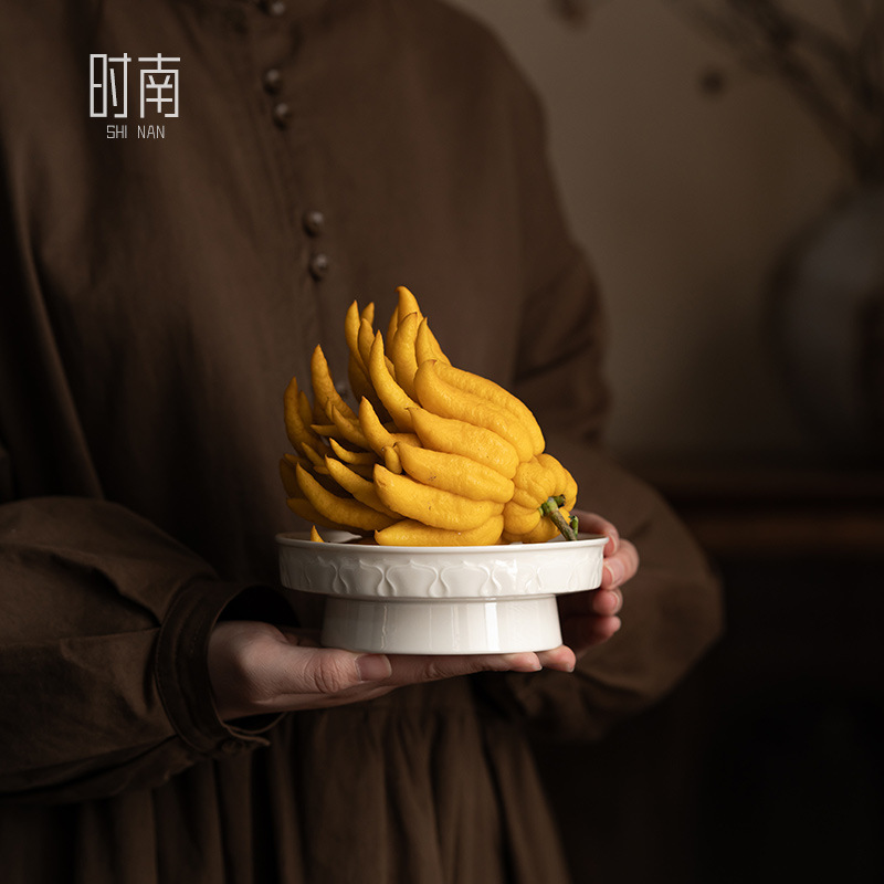 中式高颜值佛手柑托盘禅意高脚佛手果摆放盘佛手瓜专用陶瓷器皿