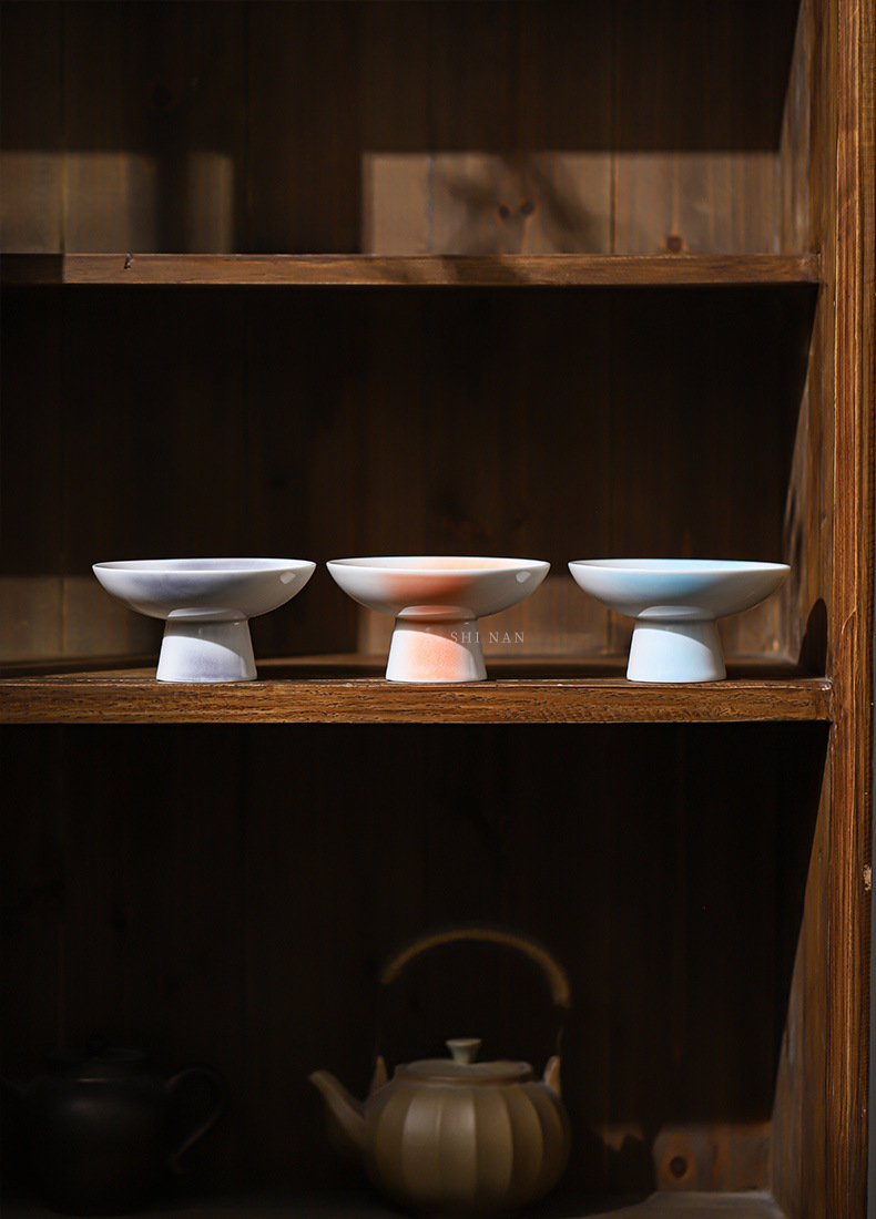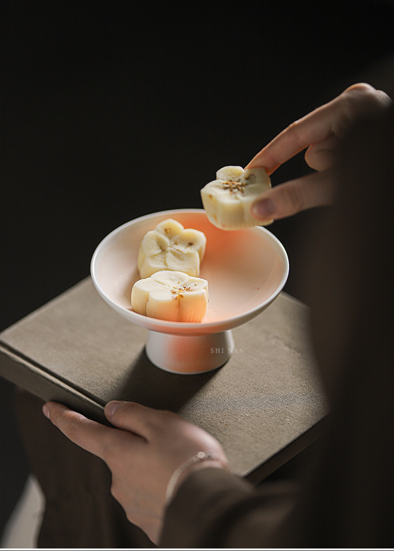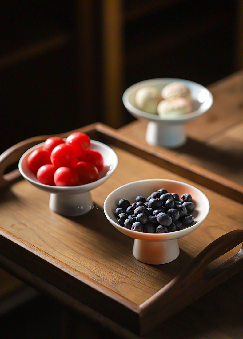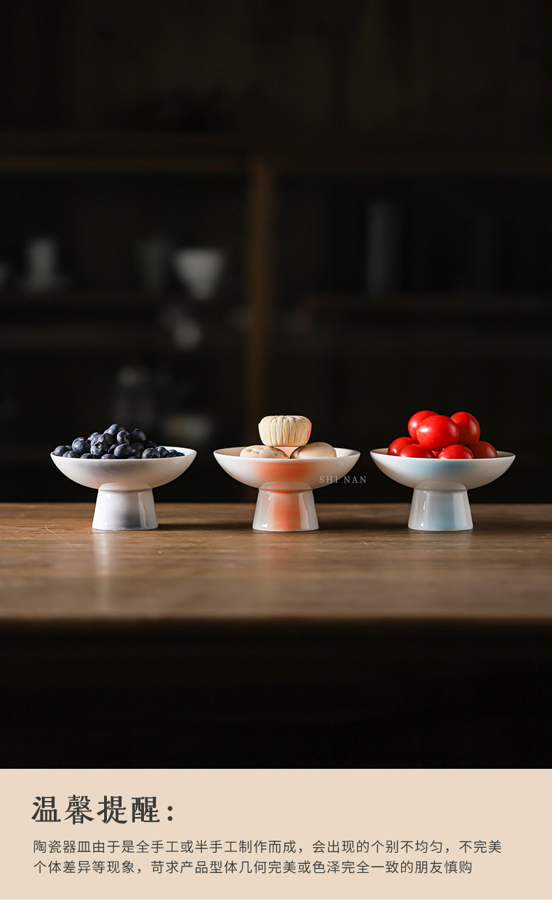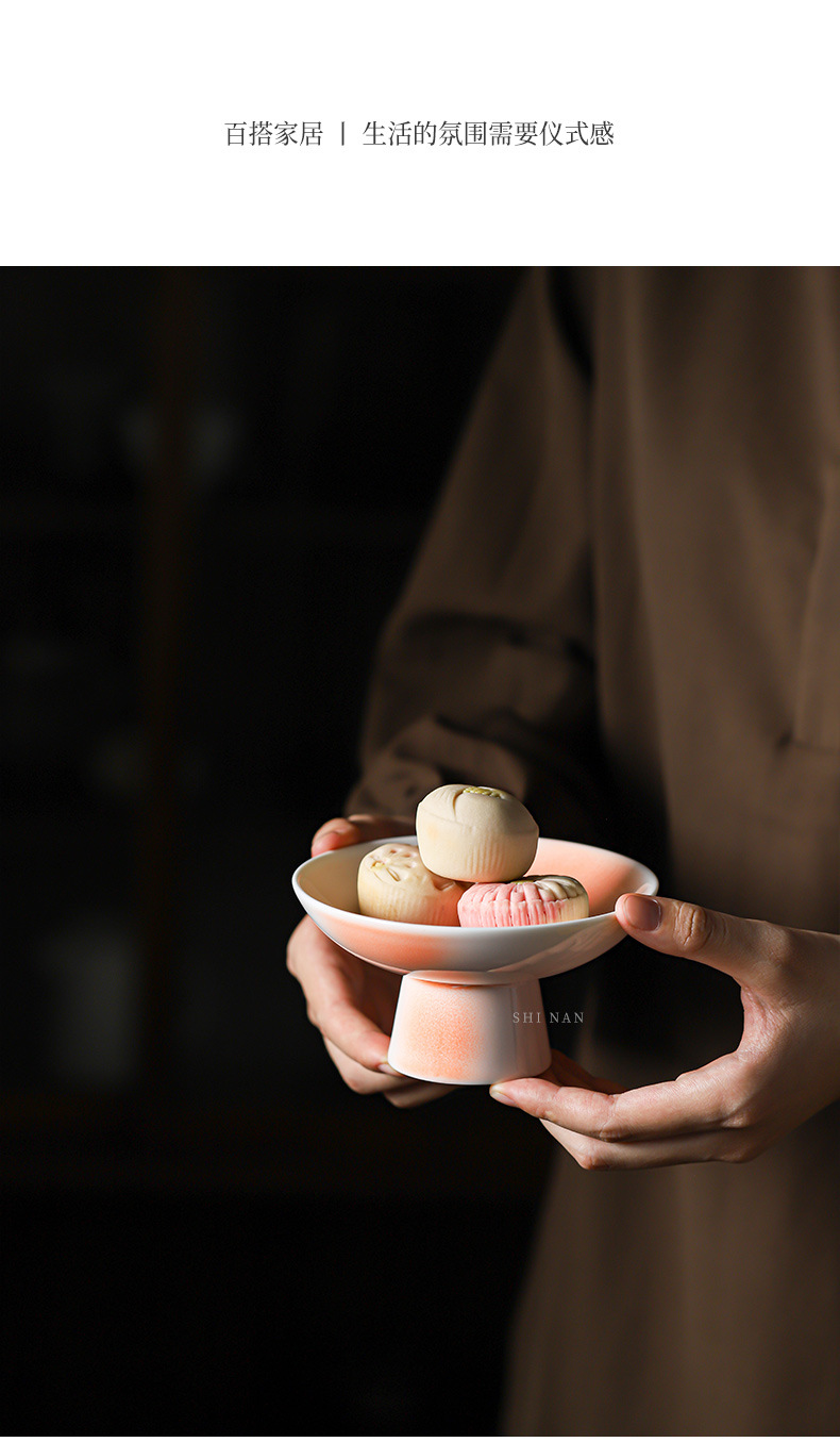 中国式陶磁器高足盤茶点盤美容院小精緻果物盤商用茶休菓子間食皿