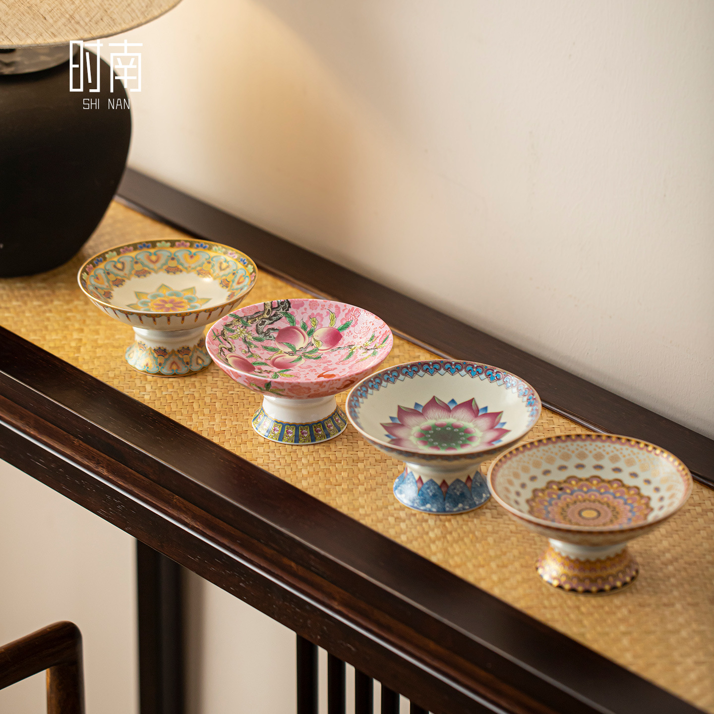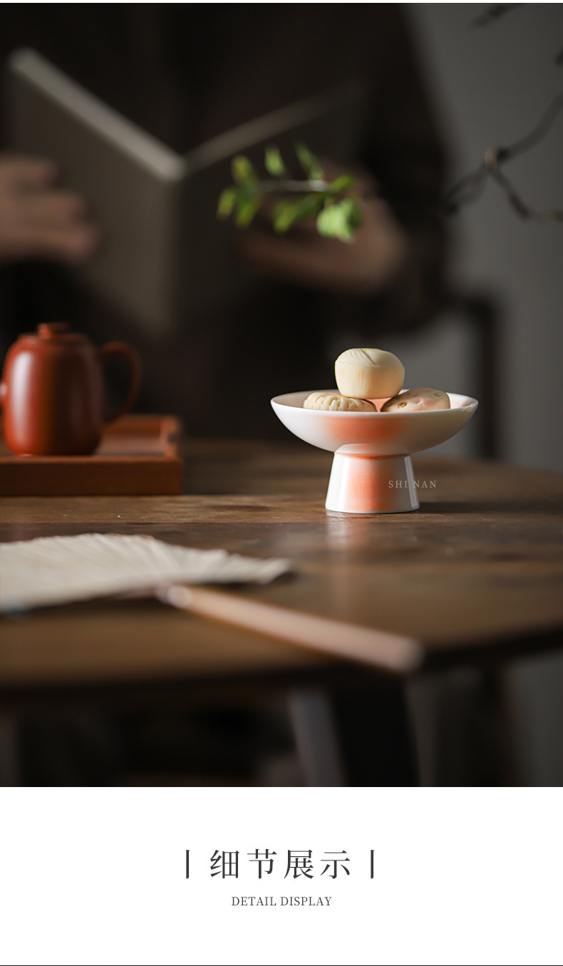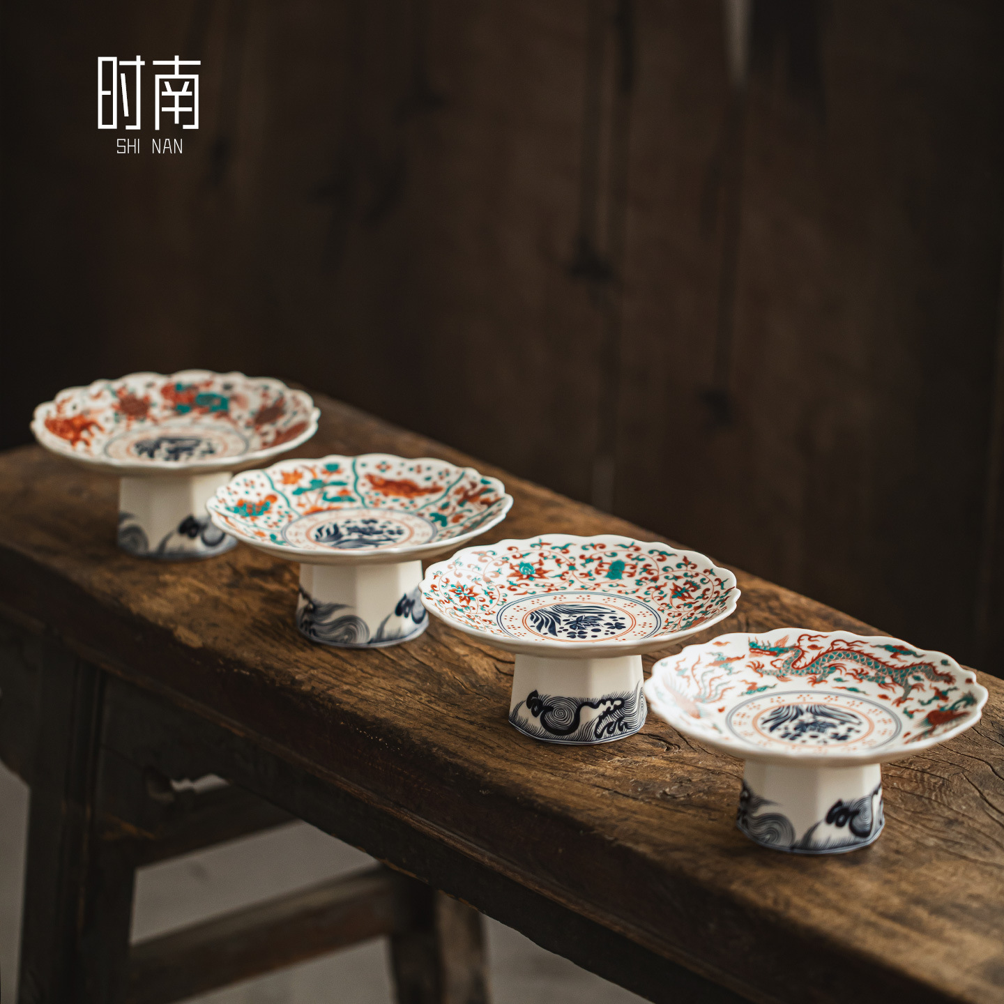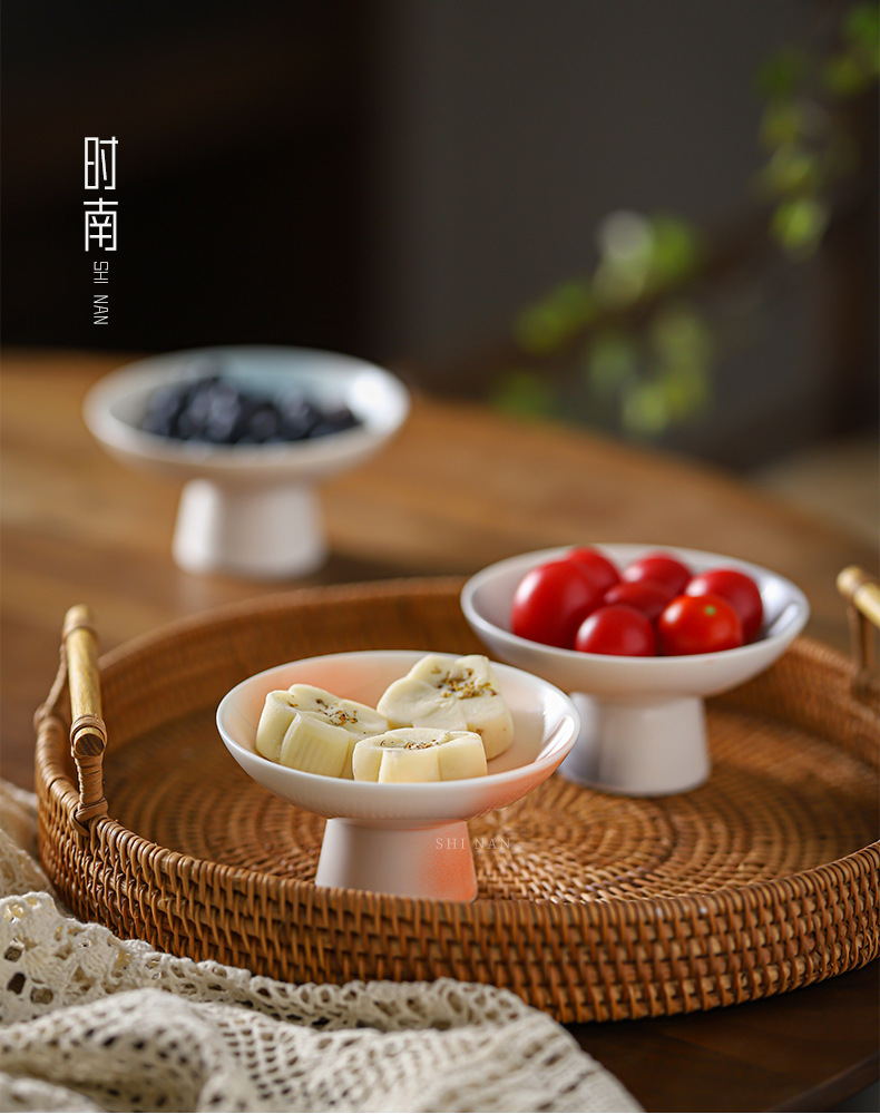 中国風高脚茶菓子皿 小さな精緻な陶磁器製デザート皿 茶室用軽食菓子陳列皿 スナックナッツトレイ