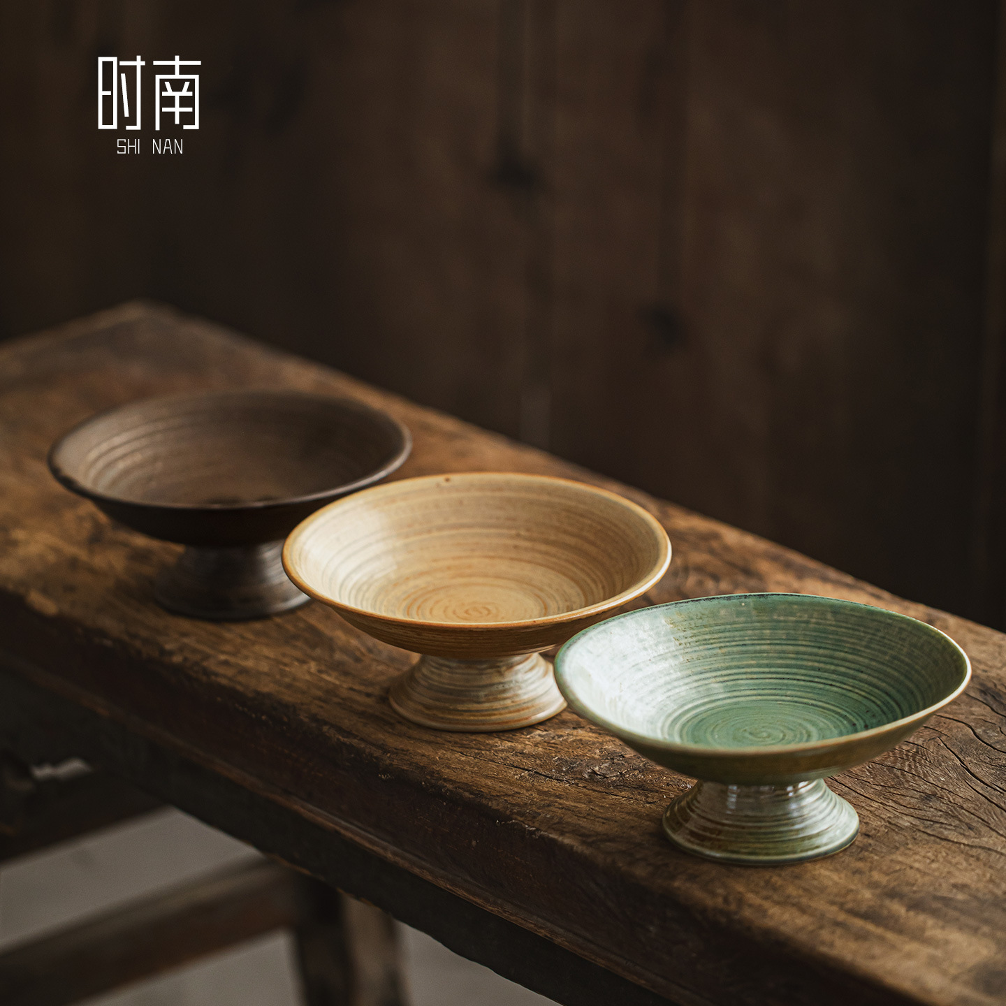 中式复古窑变果盘高脚茶点盘客厅家用陶瓷水果盘茶几干果零食摆盘