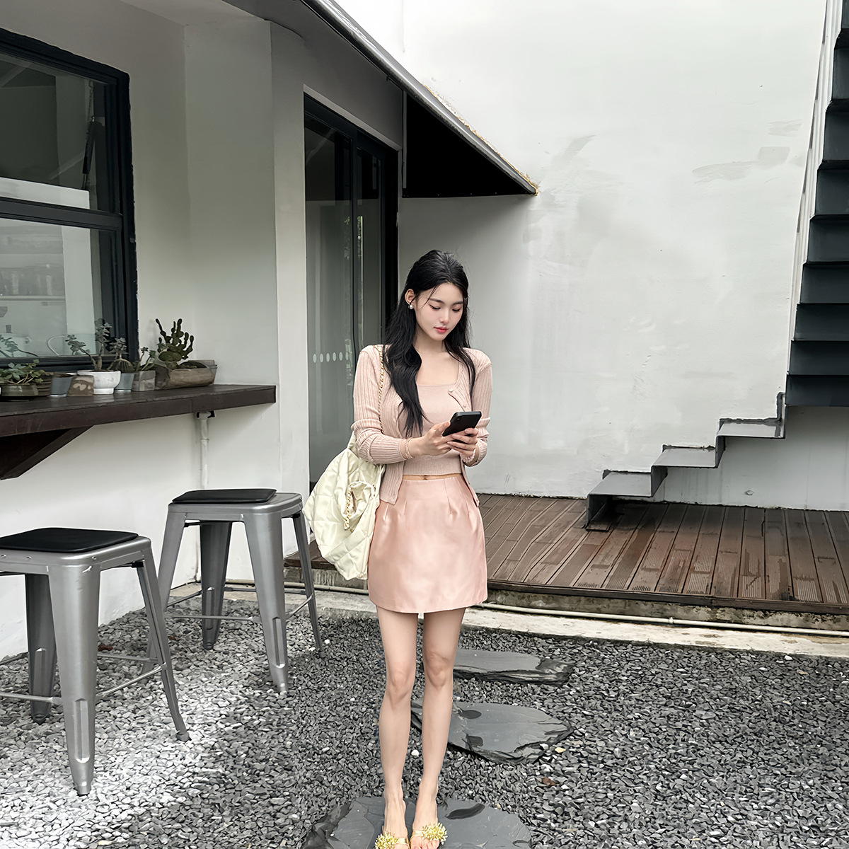 这个裙长就很得体不吃身高很显比例