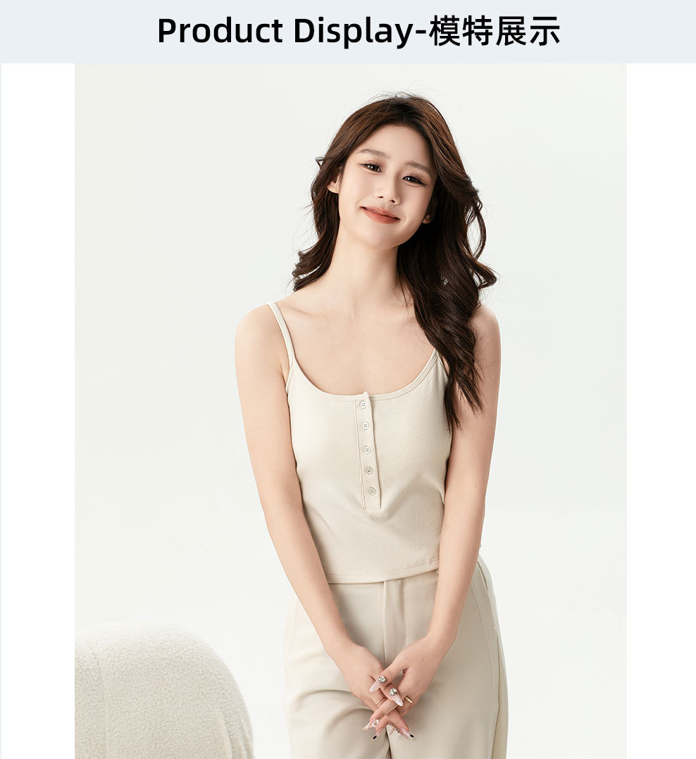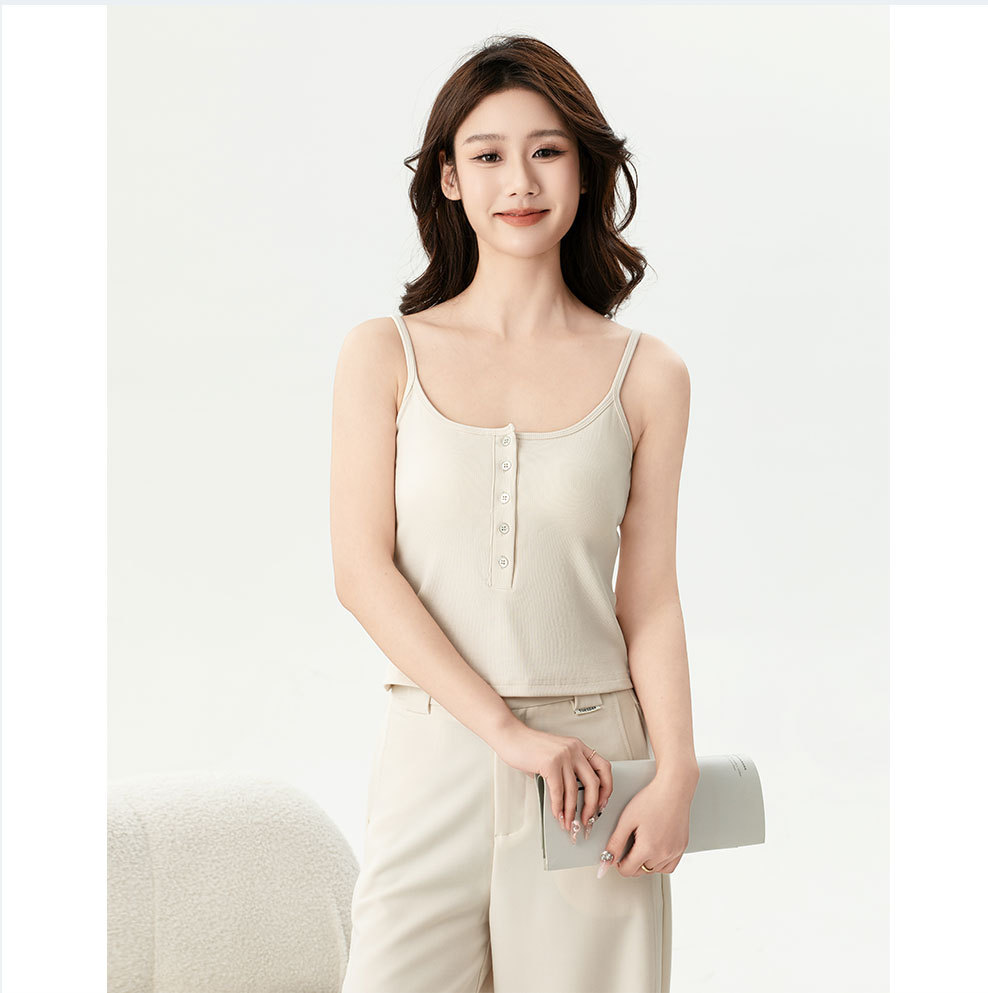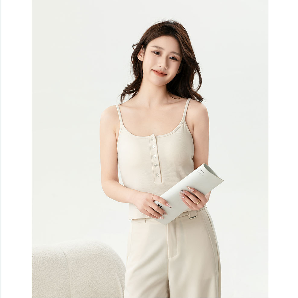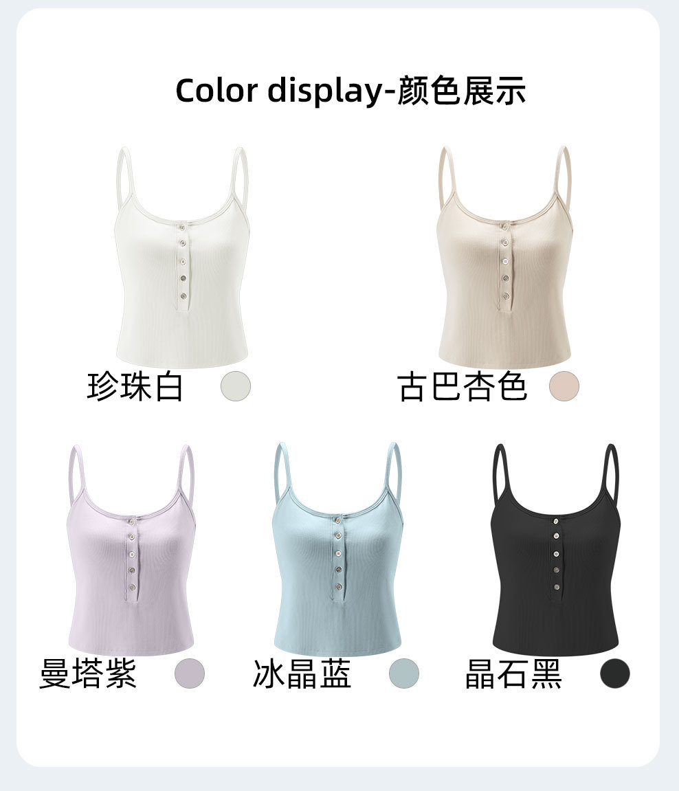 夏の新型ライゼルの細い肩ベルトの四角の襟の5ボタンの装飾のカップの一体のキャミソールの女性L870