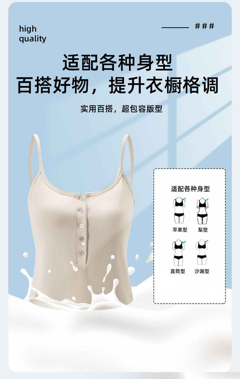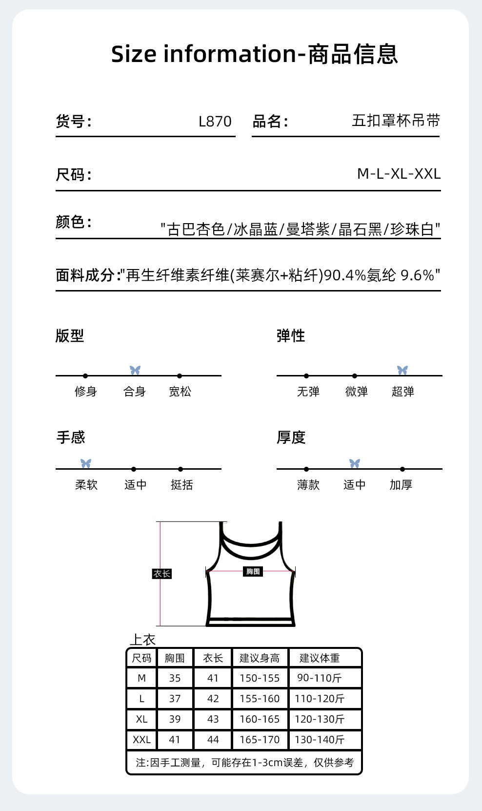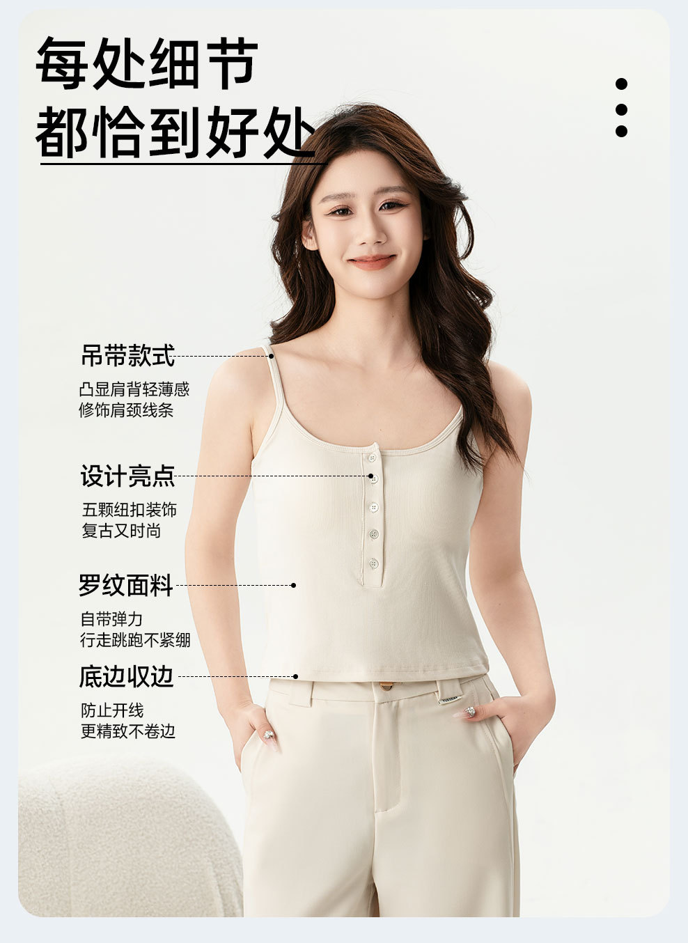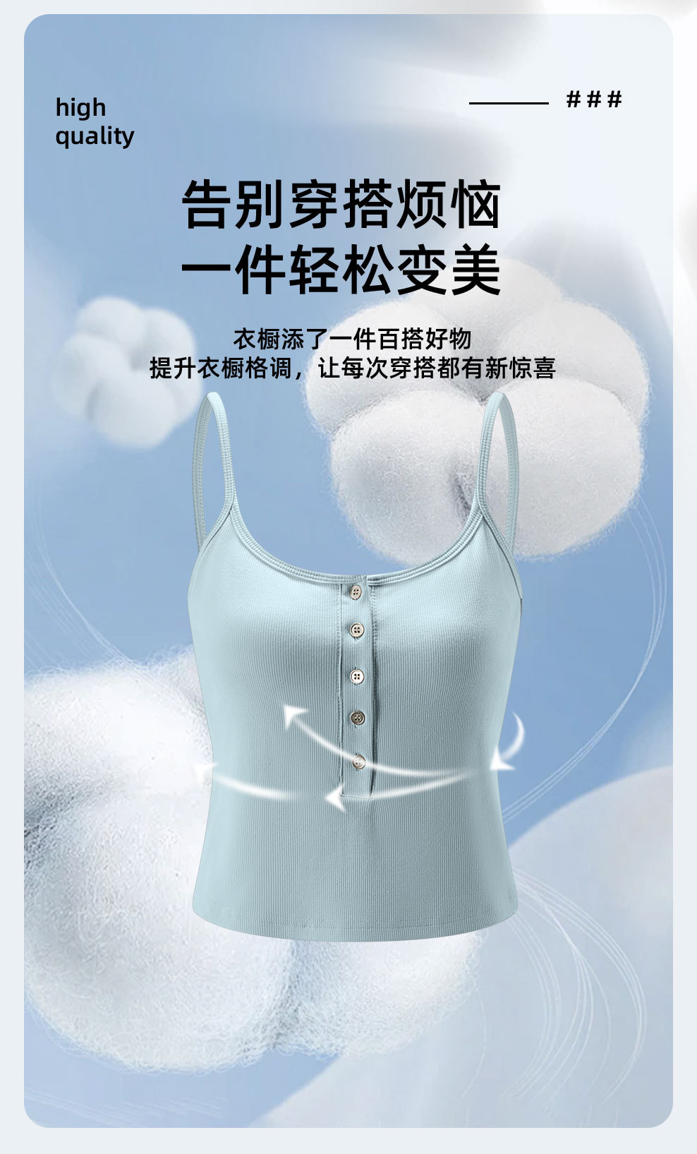 夏の新型ライゼルの細い肩ベルトの四角の襟の5ボタンの装飾のカップの一体のキャミソールの女性L870