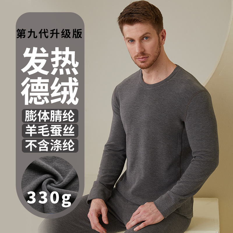 ウールシルク混紡デロン素材、ラウンドネック、ウエスト継ぎ接ぎ、メンズ長袖保温スーツ、特大サイズ、メンズインナー