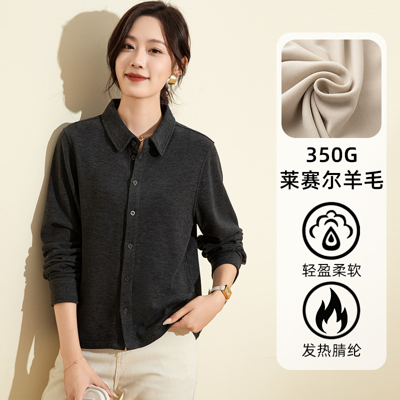 秋冬用350gカシミヤ混紡シャツ、両面デルロン素材の保温シャツ、インナーにもアウターにも着用可能、女性用裏起毛