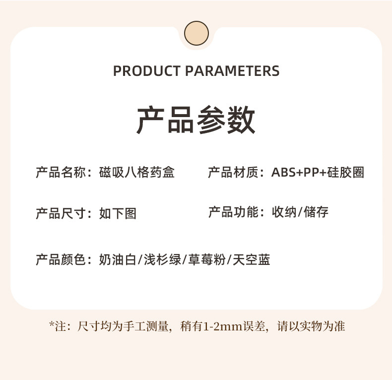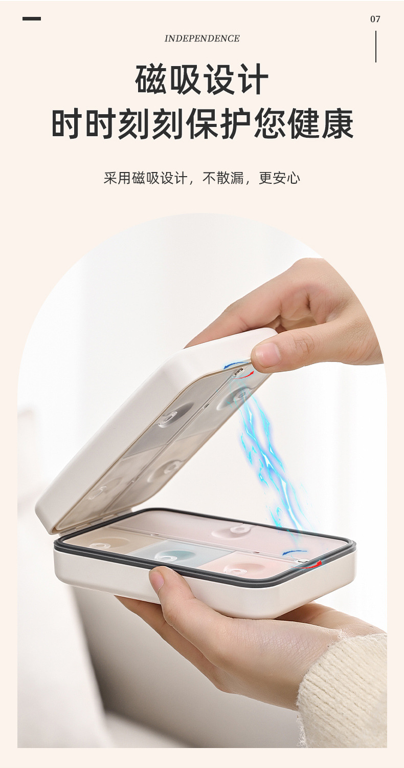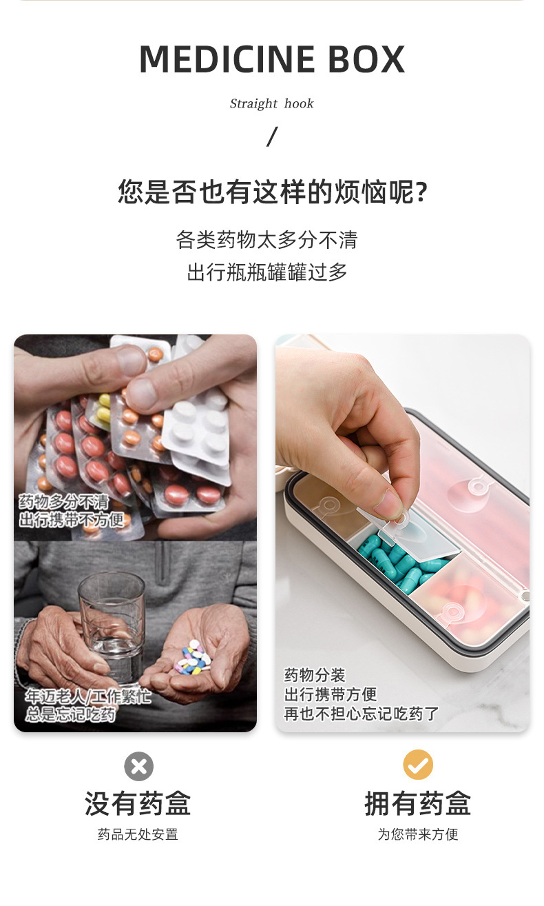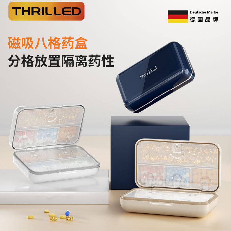 日本磁吸八格药盒便携大容量分装避光防潮药丸密封一日三餐收纳盒