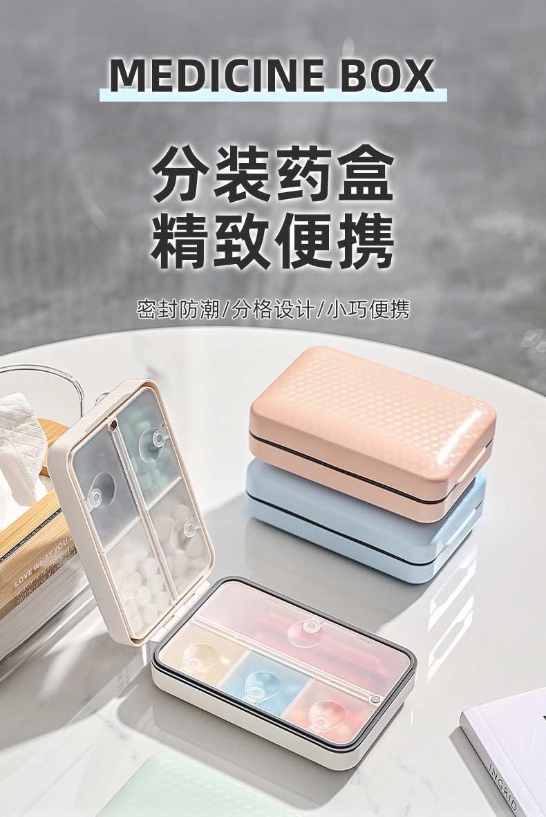 磨砂药盒便携式药盒分装盒一周七天随身小药盒密封大容量药片收纳