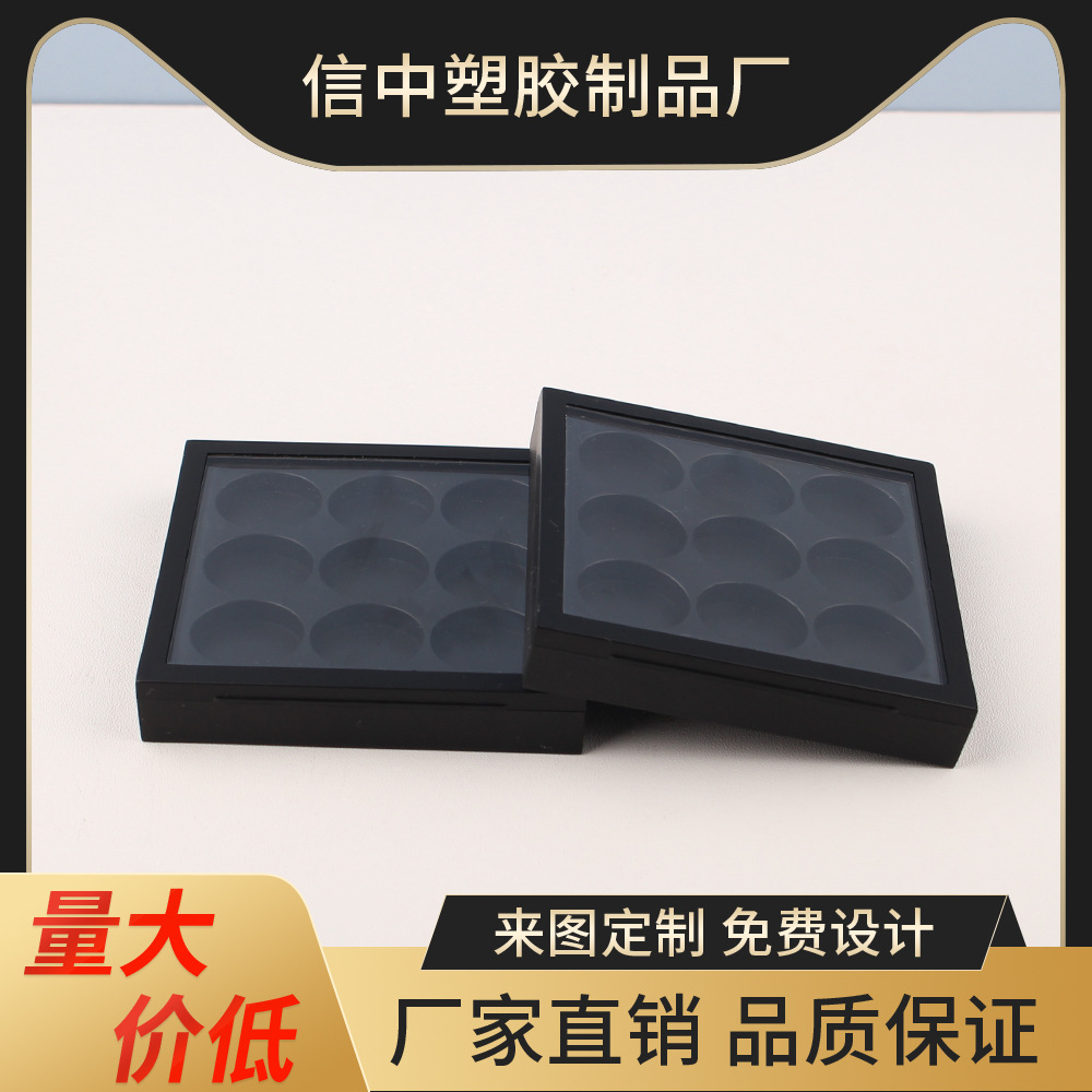 卸売包装材正方形黒九方眼影ボックスメイクアップ化粧品ラウンドフリップトップ透明窓包装箱メーカー