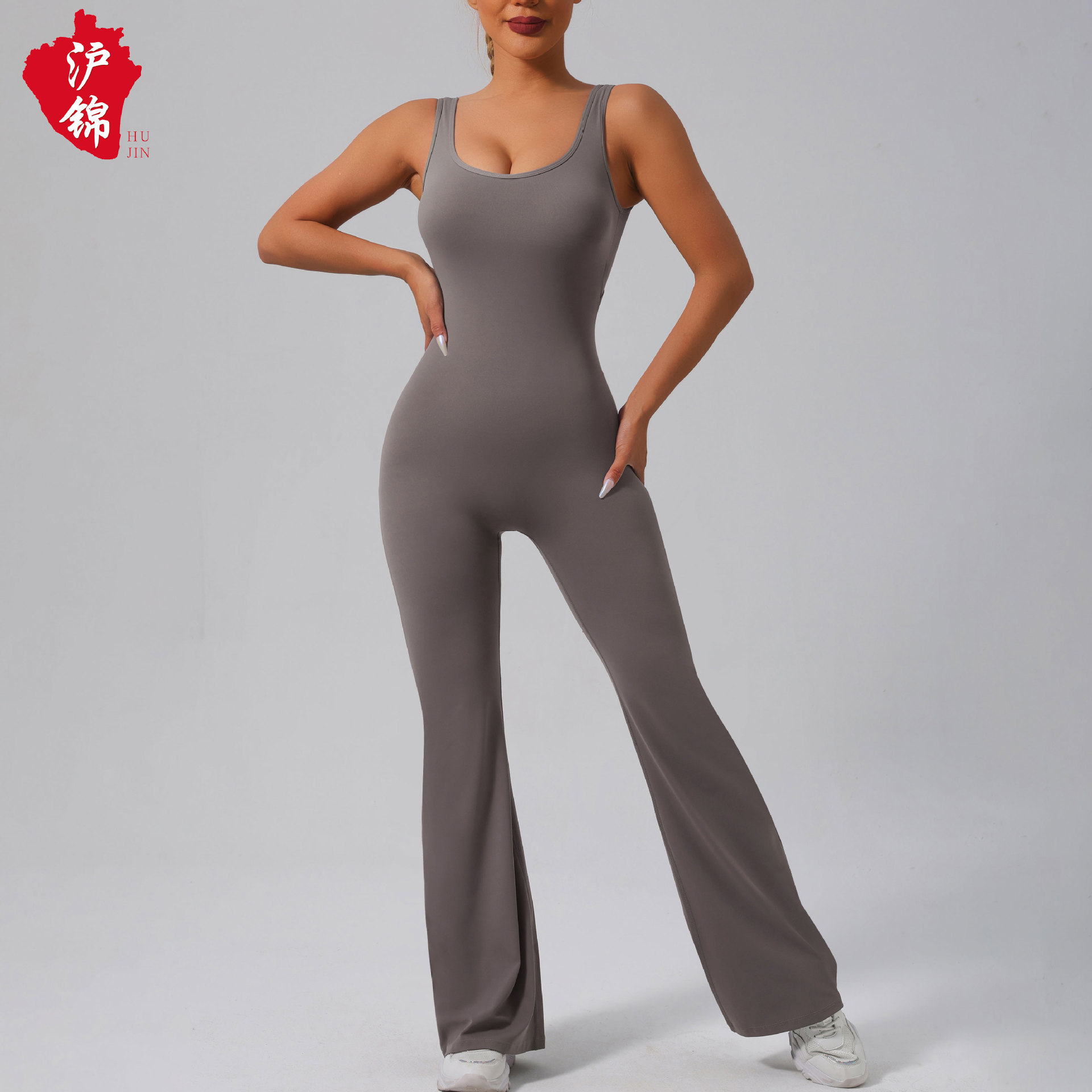 新型クロスボーダー純色美背提尻長型修身広脚連体服運動ランニングフィットネス連体ヨガ服