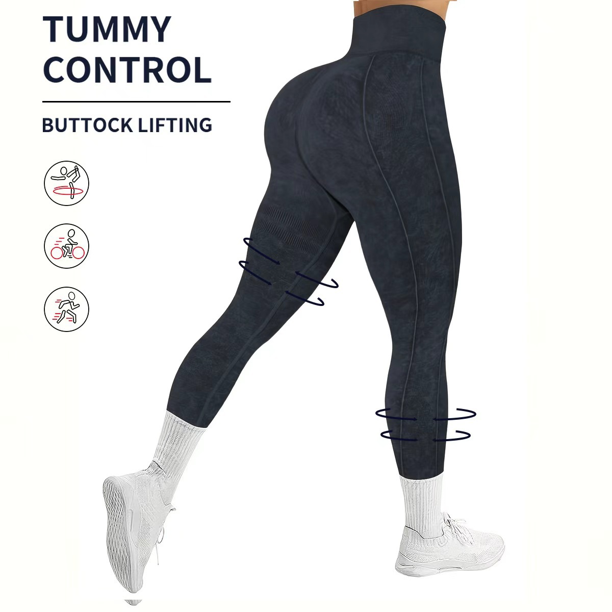 跨境无缝水洗磨砂紧身瑜伽服打底裤高腰跑步健身提臀运动长裤女