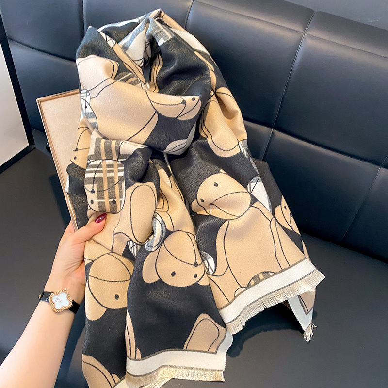 秋冬の新型のかわいい熊のファッションはカシミヤのマフラーの女性の韓国版のプリントの気質の保温の防寒のマフラーのストールをまねます。