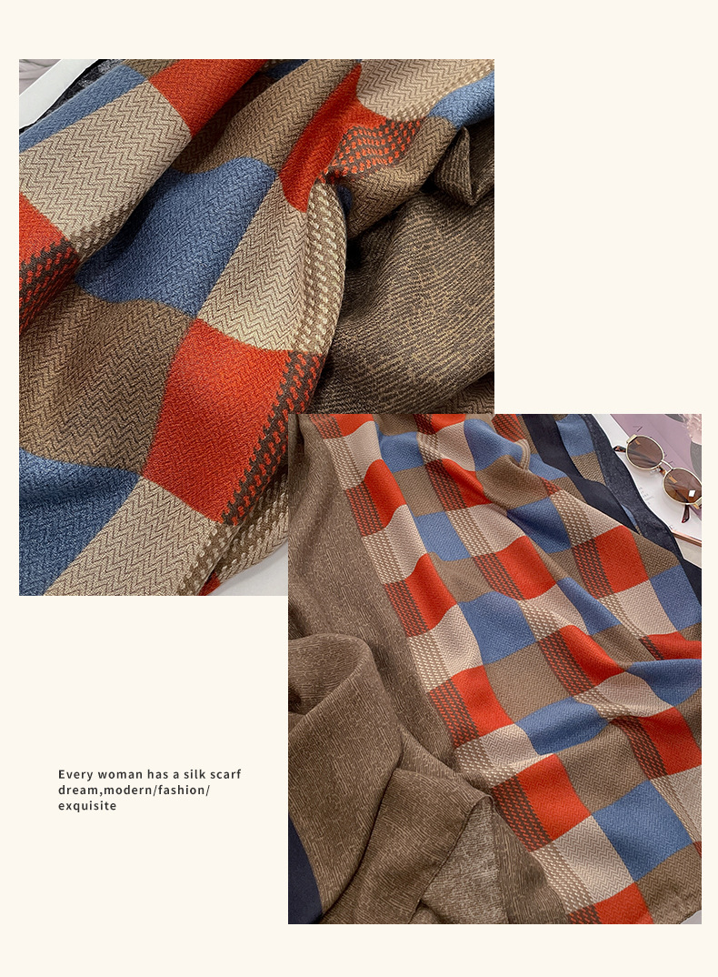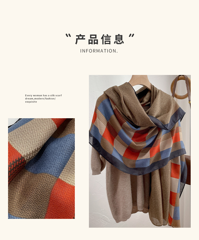韓国東大門マフラー春秋レトログラデーション格子綿麻ガーゼ旅行日焼け止めシルクタオルストール