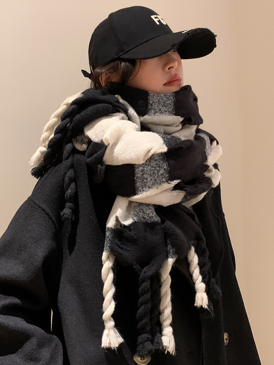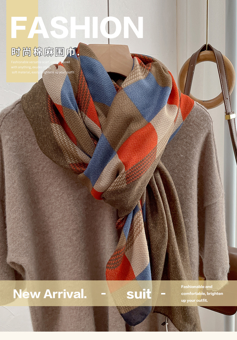 知的クラシックシンプル千鳥格綿麻手触り秋冬韓国版新型ロングタイプのスカーフマフラー女性