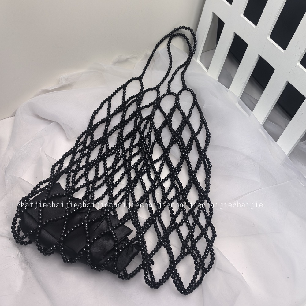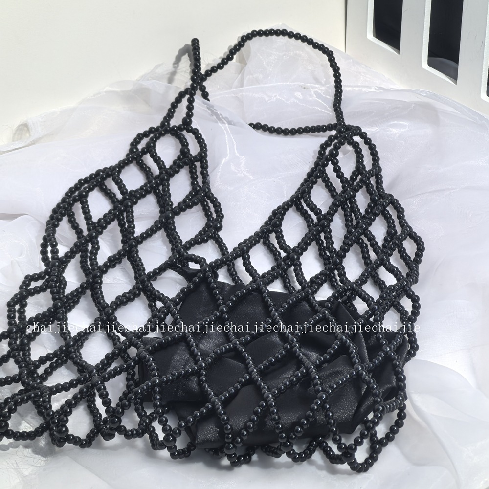 純粋な手作りのパールバッグ、中空ビーズバッグ、レディースバッグ、ネットセレブのショルダークロスボディバッグ、休暇用織りハンドバッグバッグ