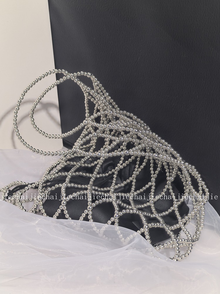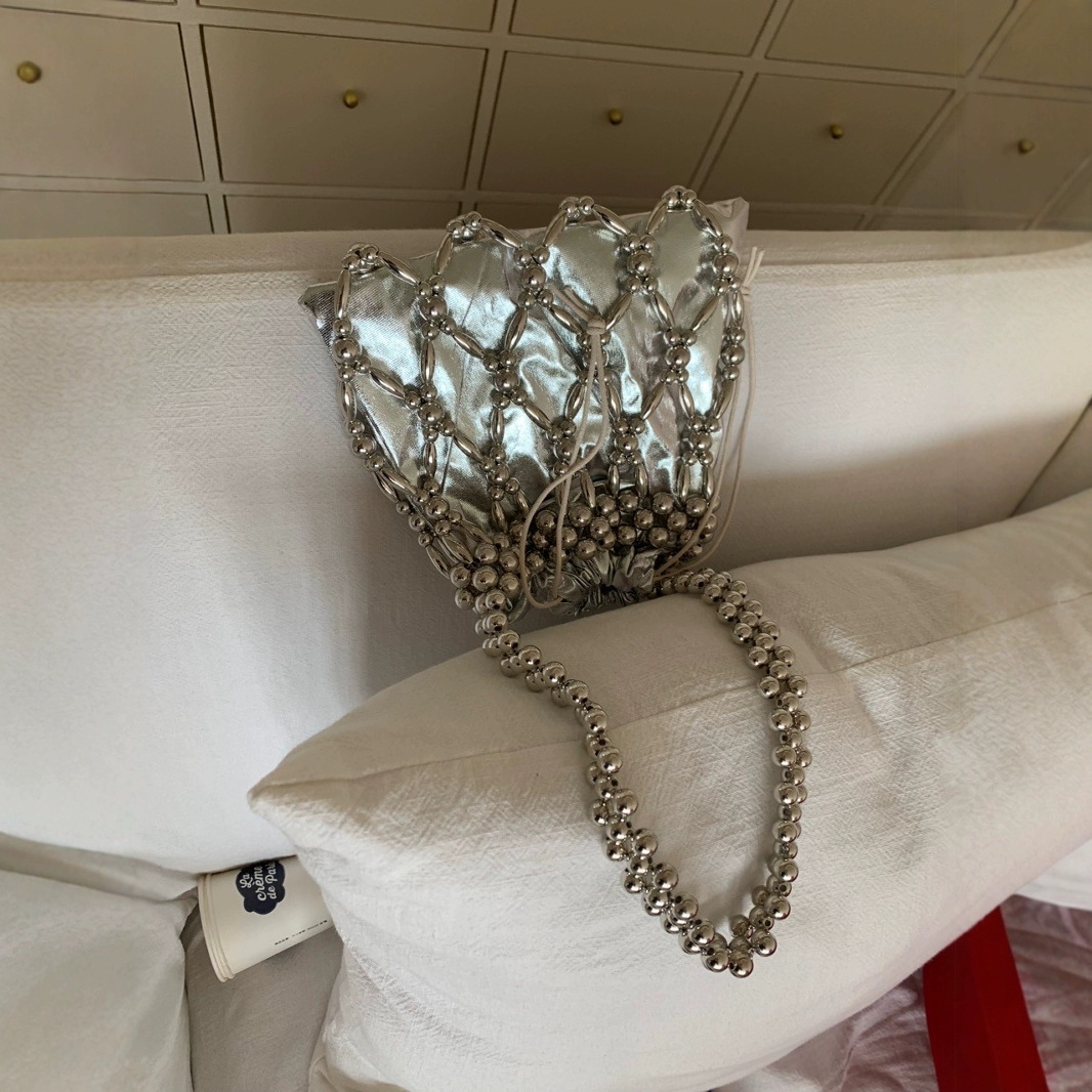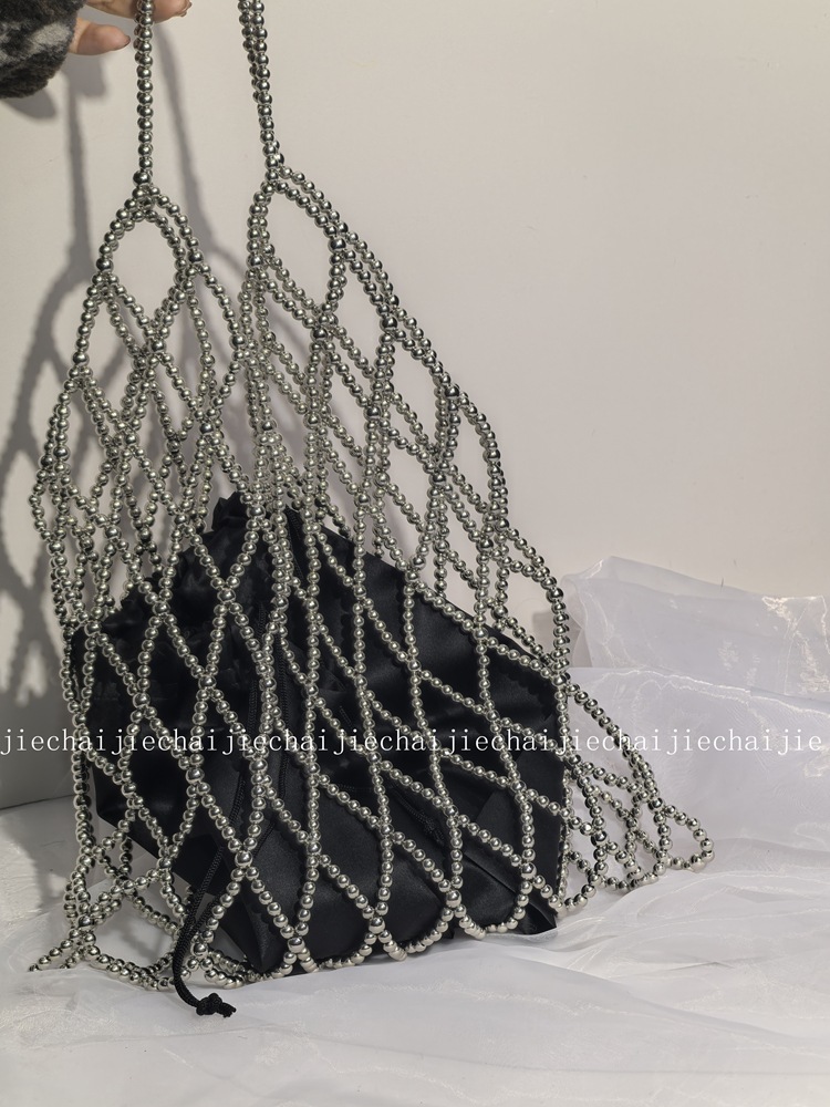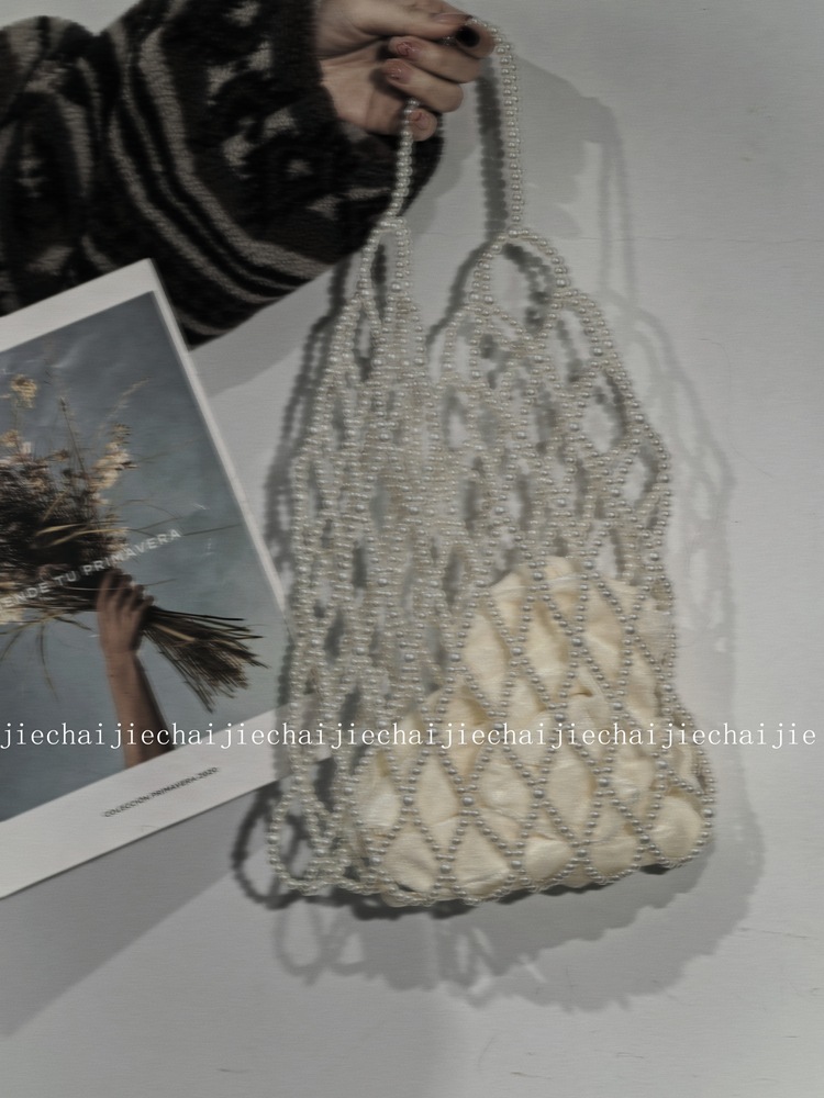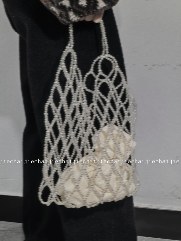 小衆手作り真珠ビーズバッグ復古バケツ小衆編みバッグ透かし彫りビーズバッグ