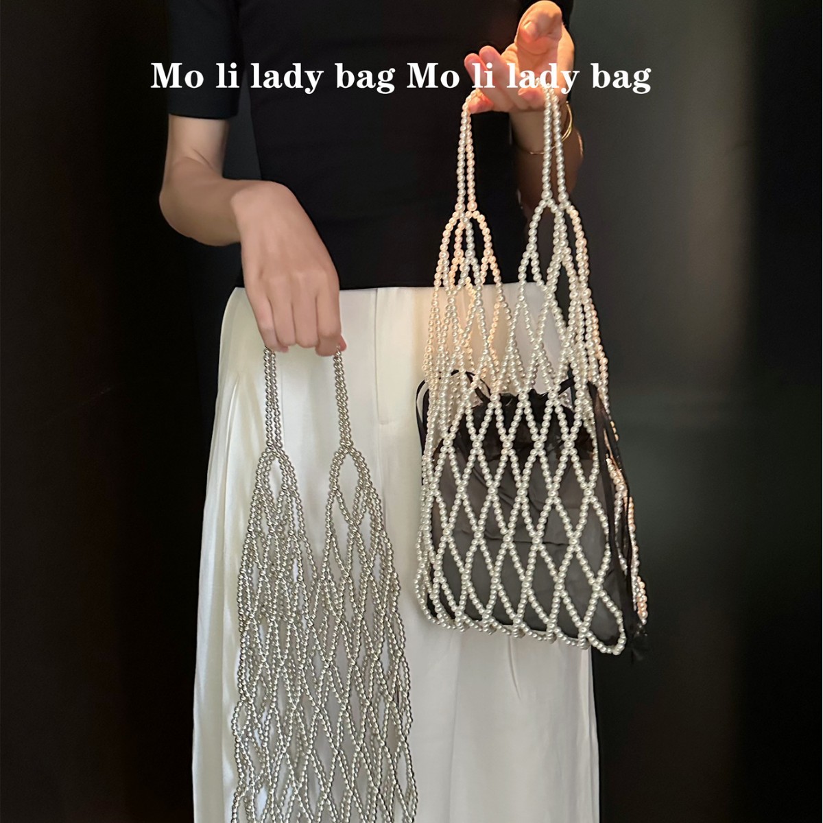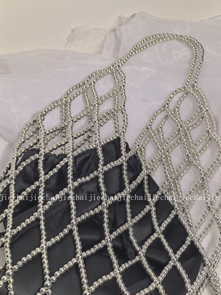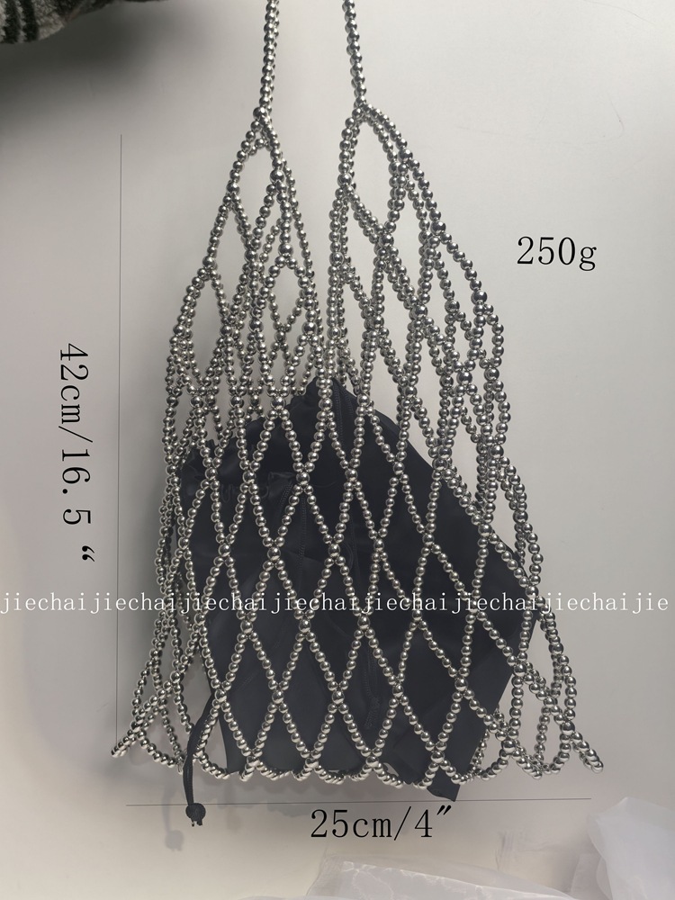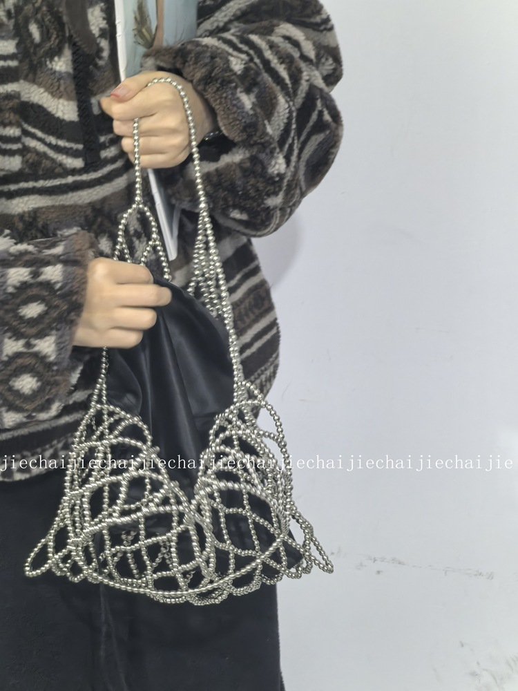 小衆手作り真珠ビーズバッグ復古バケツ小衆編みバッグ透かし彫りビーズバッグ