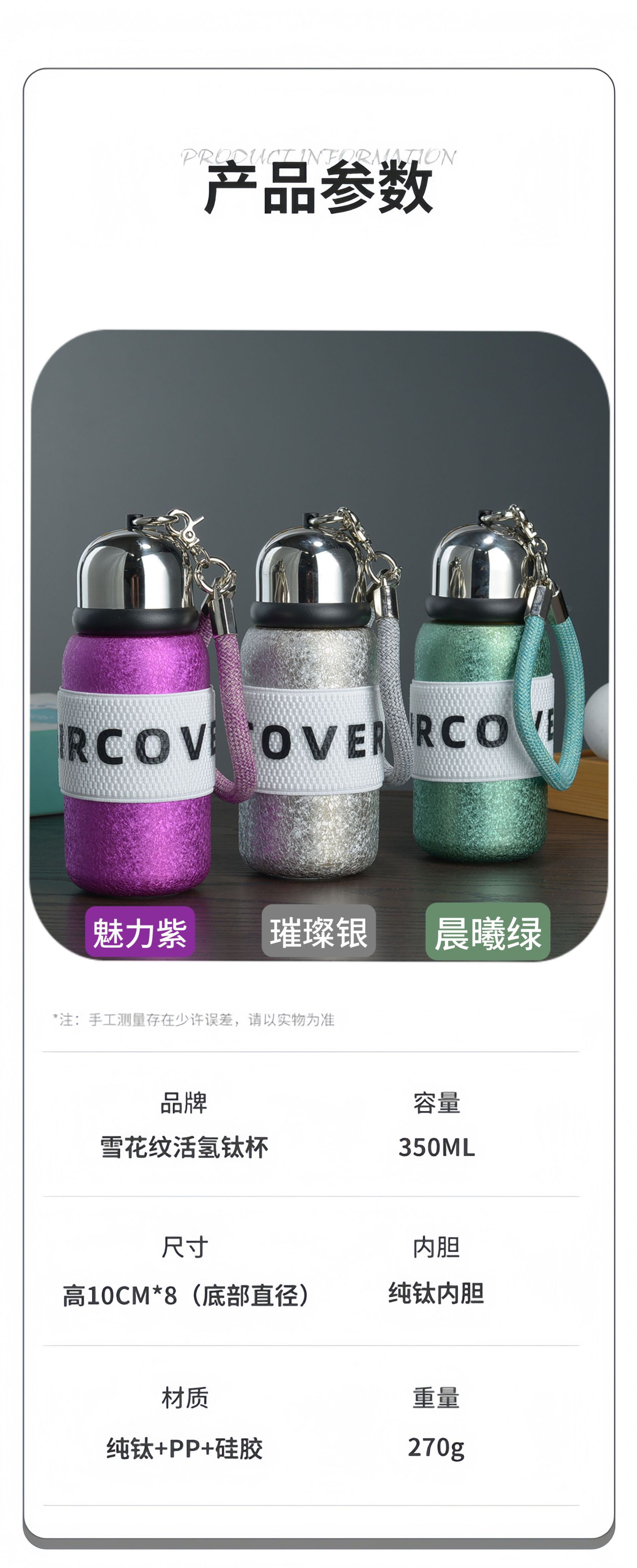 スリング小型チタンカップ純チタンライナー-ドーングリーン,スリング小型チタンカップ純チタンライナー - 魅力的なパープル,スリング小型チタンカップ純チタンライナー-ブライトシルバー